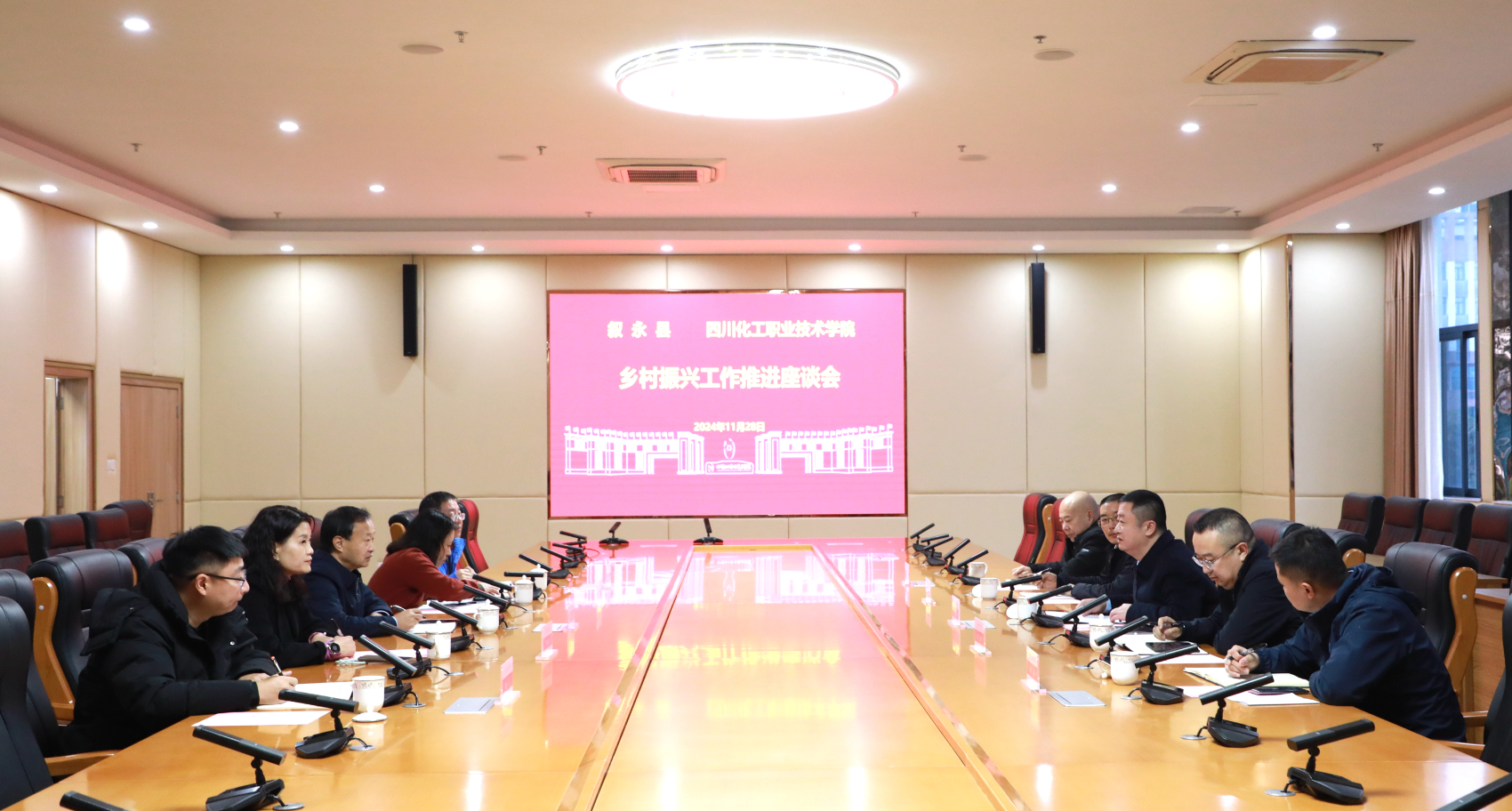 冉安健代表县委、县政府对学校多年来帮扶叙永县脱贫攻坚、乡村振兴工作表示由衷的感谢。并介绍了叙永县2024年乡村振兴工作开展情况,他希望政校双方进一步强化沟通协调,拓展合作空间、丰富合作内容、提升合作水平,共同助推县域经济社会高质量发展。