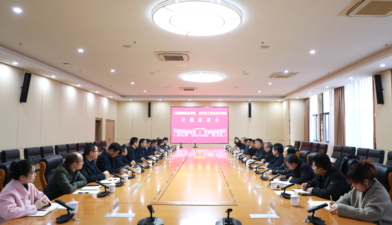 12月3日上午,江阳城建职业学院理事长、校长吴振华带队,党委书记蒋和平、执行校长刘玉增、副校长吴炎龙,党委副书记、学生工作部部长徐世银,副校长、教务处处长秦庆礼,副校长任新红、谭建鑫一行莅临学校考察交流。学校党委书记刘志勇,党委副书记、院长文申柳,党委副书记、纪委书记、工会主席郑辅春,党委委员、副院长向桢,邓启华,徐丽萍,副院长吴立凡参加交流座谈会。