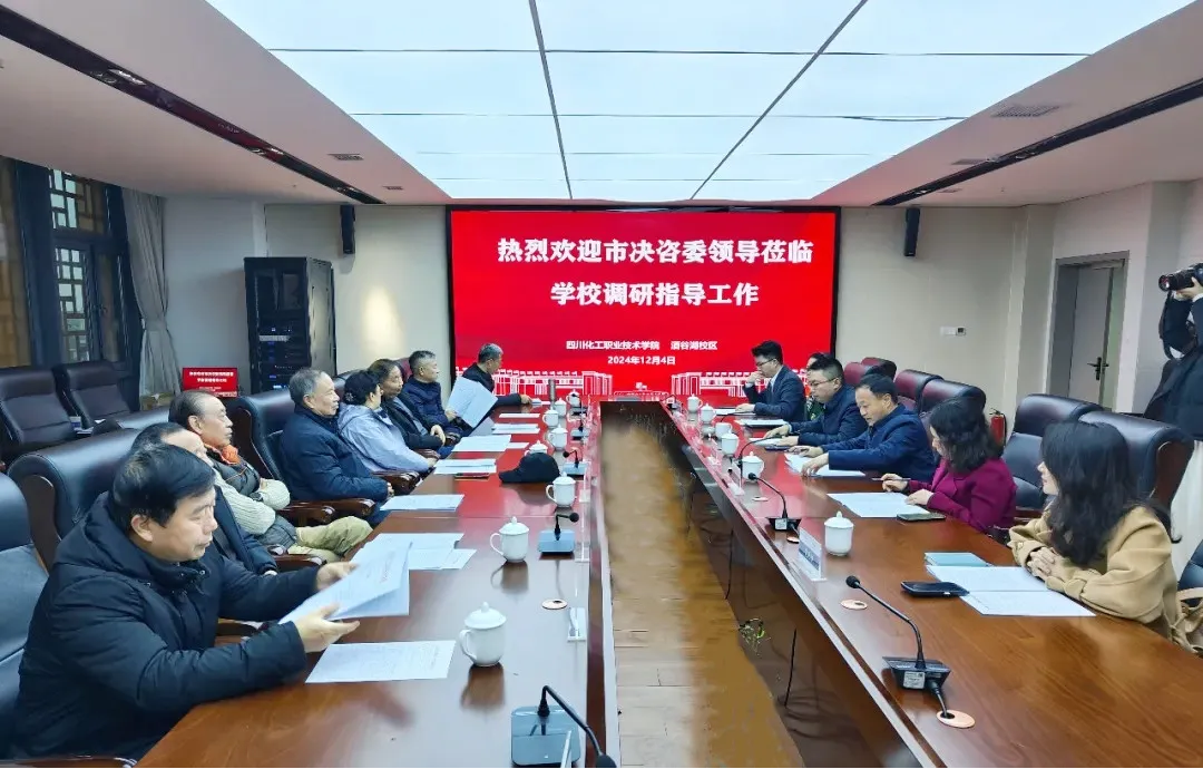2024年12月4日下午,市决咨委主任林海云带队调研学校酒谷湖校区并召开座谈会。市决咨委常务副主任李小端,副主任万举修、刘松培、伍福钊、税光跃、邵晓强,学校党委委员、副院长谢光杰、徐丽萍参加调研座谈。会议由学校党委书记刘志勇主持。