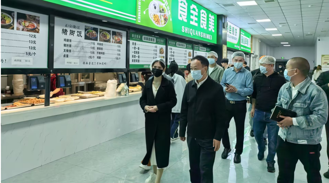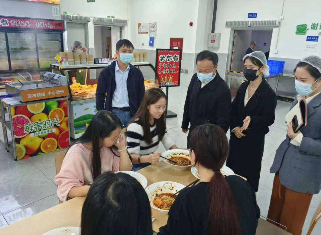 刘志勇还深入食堂后厨的烹饪间、食品加工间、留样间、食品原材料库房等仔细查看,详细询问工作人员关于食品采购储存加工等情况,他要求食堂管理人员要履职尽责,强化食品安全底线意识,严把食材进货关、验收关、储存关,严守食品安全底线;要着力在质优价廉的菜品上下功夫,提高菜品的质量和口感,增加师生的满意度和回头率,赢得师生良好口碑;要布置温馨干净整洁的就餐环境,提升就餐氛围感;要主动积极听取同学们的意见建议,以小见大,认真对待,不断改进菜品质量和服务品质。
