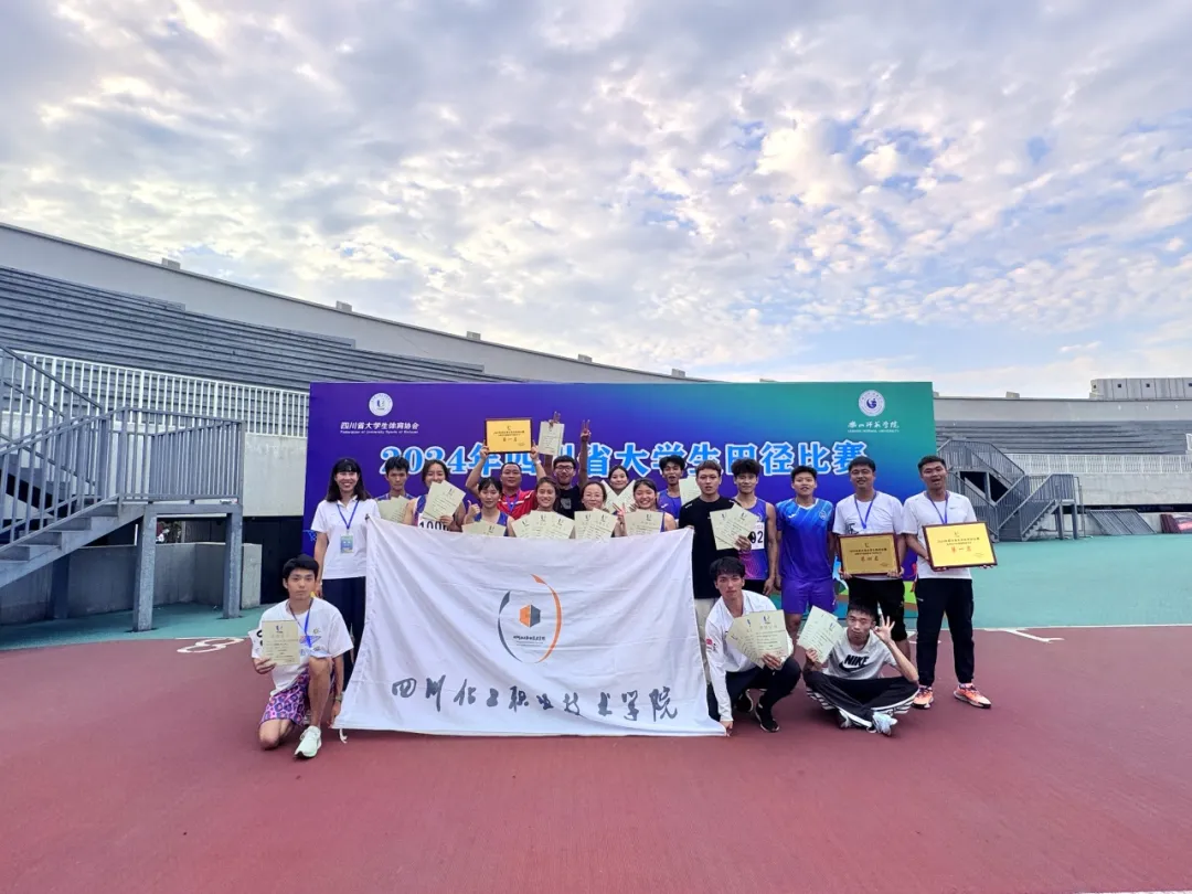 由四川省教育厅主办、四川省大学生体育协会执行的“2024年四川省大学生田径比赛”于2024年6月11日至14日在乐山师范学院和乐山市体育中心举行。此次比赛吸引了全省90多所高校的2000余名教练员和运动员参与。经过激烈角逐,学校田径队斩获了高职高专校园组团体总分第一名、男子团体总分第一名以及女子团体总分第四名,实现历史突破!