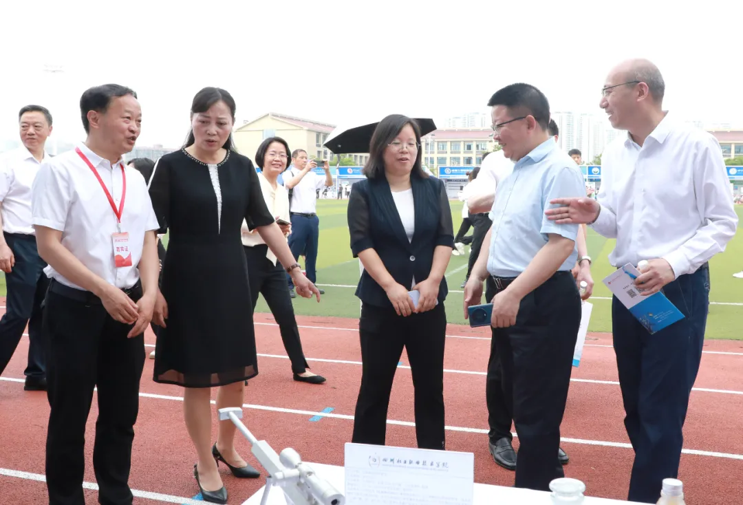 教育部职成司办公室一级调研员(主持工作)白维,副市长罗素平,省经信厅二级巡视员廖卫民,市教育工委书记、市教体局党组书记、局长刘著及兄弟院校领导等现场考察四川化工职业技术学院展厅,详细了解学校教育教学改革、产教融合、校企合作开展情况和取得成绩。学校党委书记刘志勇,党委副书记、院长文申柳,党委委员、副院长邓启华陪同考察。