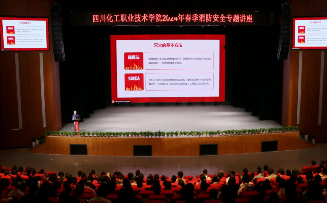 当天下午14:00,各部门安全员、图书馆管理员、宿舍管理员、食堂工作人员、各班辅导员及学生代表共计600余人在博雅礼堂参加了由纳溪区消防救援大队参谋长李虎作的2024年春季消防安全专题讲座。