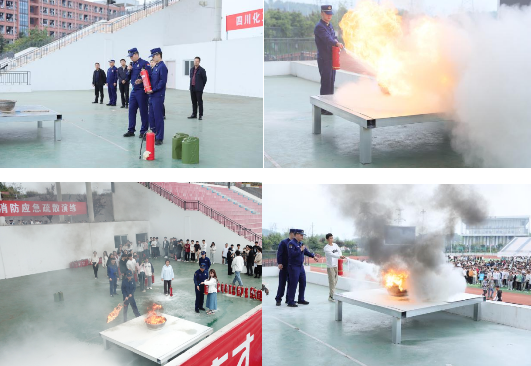 疏散演练结束后,纳溪消防救援大队为师生现场展示并讲解了灭火器等消防器材的正确使用方式。在消防员手把手的指导下,同学们亲身体验灭火器实操项目,零距离“接触消防、认识消防、体验消防”。