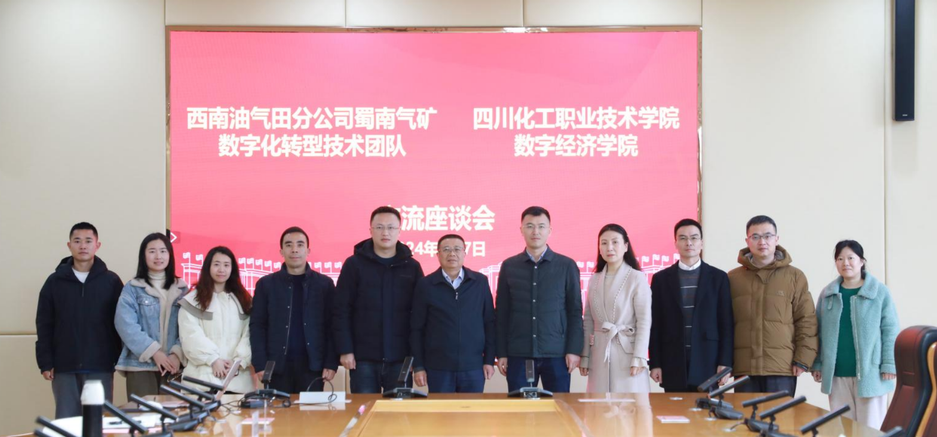 3月7日下午,西南油气田分公司蜀南气矿信息科技部主任王旭带领数字化转型技术团队一行三人到我校参观交流。学校党委委员、副院长邓启华参加交流会。