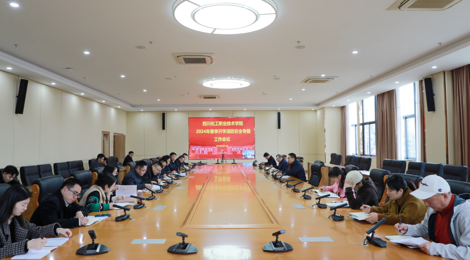 会议学习传达了《四川省教育厅 四川省消防救援总队关于开展春季开学消防安全专题活动的通知》《四川省教育厅 四川省消防救援总队关于联合开展春季学校火灾疏散逃生大演练活动的通知》等文件精神,并结合学校火灾防控工作实际,对开展2024年春季开学消防安全专题活动方案向各部门进行了任务分解,各部门围绕开学消防安全专题活动方案作了交流发言。