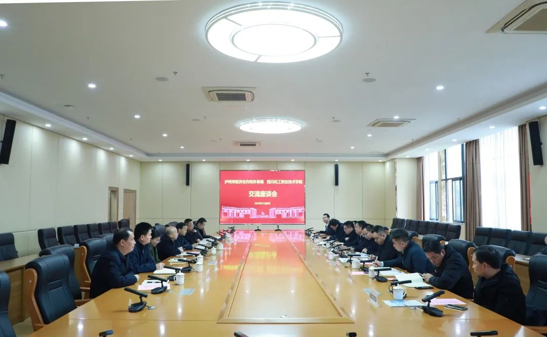 2023年12月8日上午,学校与泸州市经济合作和外事局在学校综合办公楼第一会议室召开交流座谈会。泸州市经济合作和外事局党组书记、局长刘宇,市对外友协专职副会长张祖航,纳溪区区委常委、组织部部长冯科,学校党委书记刘志勇,党委委员、副院长蒲开伦参加会议。
