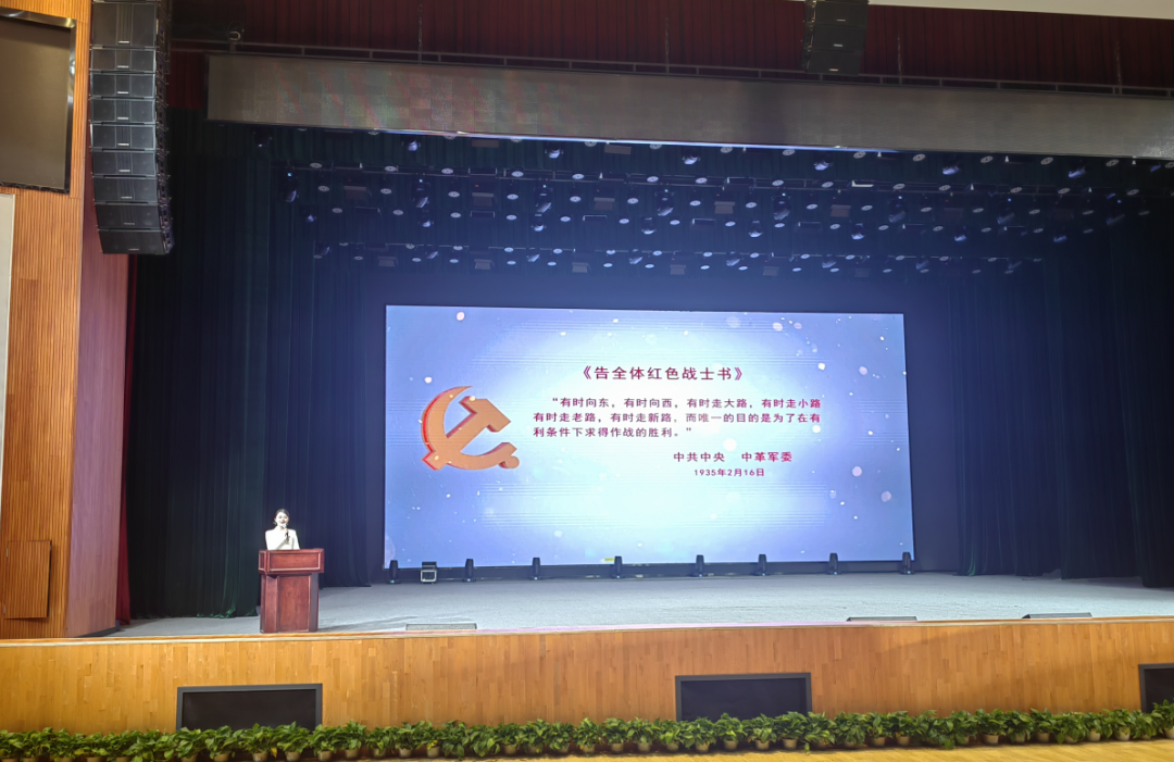 12月14日,由泸州市委宣传部、泸州市直机关工委指导,泸州市广播电视台倾力打造的《新时代音乐思政课》在学校博雅礼堂生动开讲。省委主题教育第四巡回督导组成员、西华大学宜宾校区党工委管委会副主任刘传辉,学校党委书记刘志勇、党委副书记陈淑娟和全校教职工代表、学生代表等近800人到场聆听了思政课。