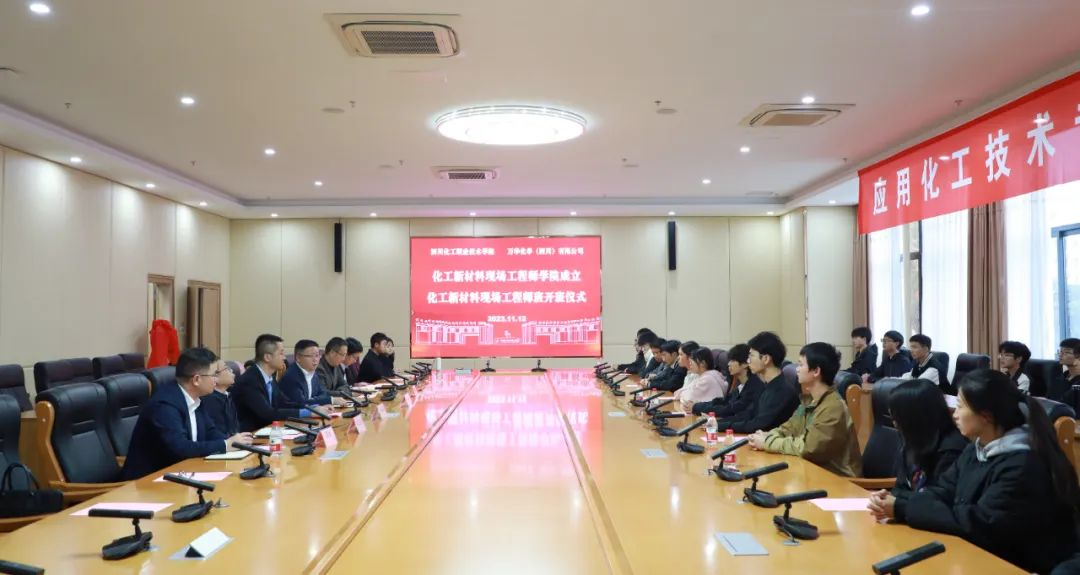 为贯彻实施科教兴国战略,强化现代化建设人才支撑,2023年11月12日,学校与万华化学(四川)有限公司共建化工新材料现场工程师学院暨化工新材料现场工程师班开班仪式在学校综合办公楼第一会议室举行。万华化学(四川)有限公司人力资源部副总经理韩春臻,学校党委副书记、院长文申柳,副院长邓启华参加仪式。仪式由应用化工学院院长徐淳主持。