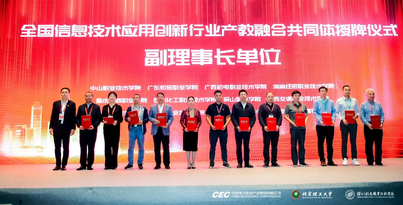 近日,由中国高等教育学会、中国职业技术教育学会、工业和信息化部教育与考试中心指导,中国电子、北京理工大学、深圳信息职业技术学院主办的全国信息技术应用创新行业产教融合共同体(以下简称“共同体”)成立大会在青岛召开。学校党委委员、副院长谢光杰,数字经济学院副院长(主持工作)罗在文受邀参加大会。