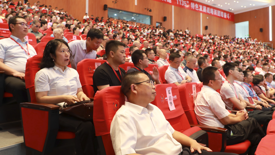中国化学品安全协会党委书记、秘书长路念明,省教育厅二级巡视员胡必军,市委、市人大、市政府、市政协相关领导曹斌、李堂兵、徐利、罗素平、马宗慧、李华桂,四川轻化工大学校长庹先国,西南医科大学校长张春祥,中国化工教育协会副会长于红军,化工行业技能鉴定中心主任沈磊,西南交通大学首席教授、 IEEE Fellow、国家级高层次人才范平志及省经信厅、省教育厅、省人社厅,市级有关部门、区县领导,省内外兄弟院校和相关行业协会、相关企业等单位负责同志,关心和支持学校建设发展的社会各界人士,学校全体校领导、老领导、校友代表和师生代表近1000人在主会场参加会议。离退休老同志、在校师生在分会场通过现场直播观看会议。
