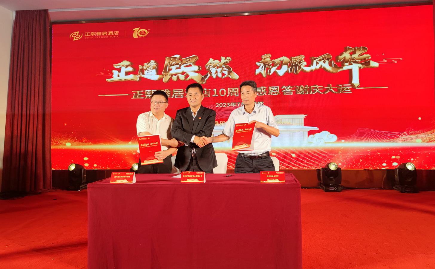 学校党委副书记、院长文申柳与四川省盐业学校党委副书记扈极文、四川正熙投资实业有限公司董事长谢兵共同签约。