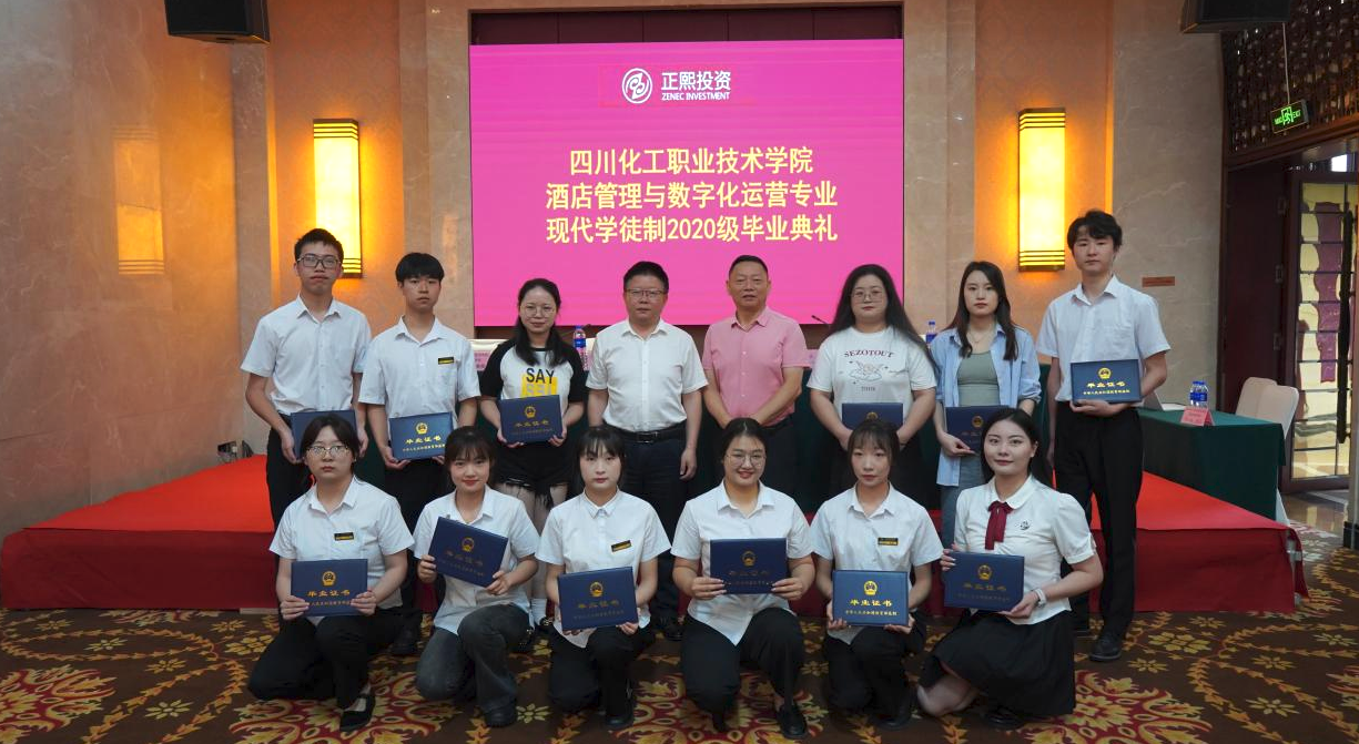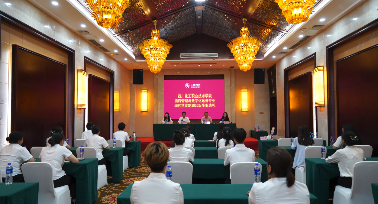 6月30日,成都正熙雅居酒店、成都明宇尚雅酒店和成都瑞城名人酒店分别举行了2020级酒店管理专业现代学徒制毕业典礼。学校党委副书记、院长文申柳,经济管理学院院长马小洪、酒店管理与数字化运营专业负责人宣雯娟、专业教师王雅琦、2020级酒店管理学徒班辅导员谢耀辉及三家酒店各级管理人员和全体师傅参加活动。