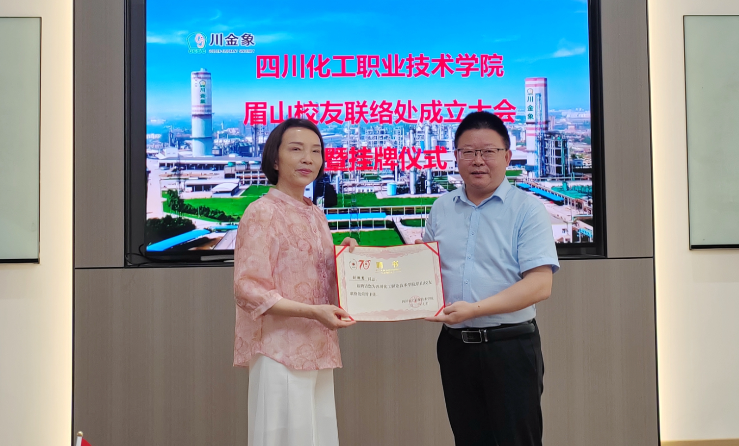 7月25日,学校眉山校友联络处成立大会暨挂牌仪式在四川金象赛瑞化工股份有限公司举行。四川金象赛瑞化工股份有限公司副总裁、学校杰出校友刘朝慧,四川道弘新材料有限公司董事长、学校杰出校友周武刚,学校党委副书记、院长文申柳出席会议。眉山校友联络处成员、优秀校友代表、学校校庆办及相关部门人员参加会议。
