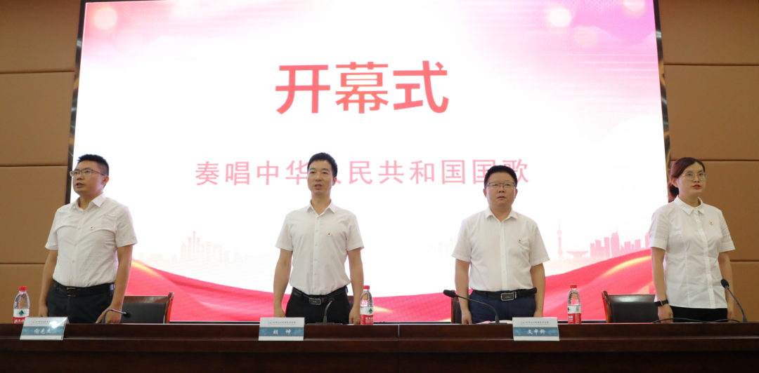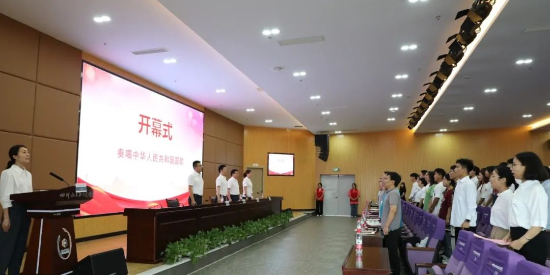 大会在庄严的国歌声中拉开帷幕,全体起立奏唱国歌。