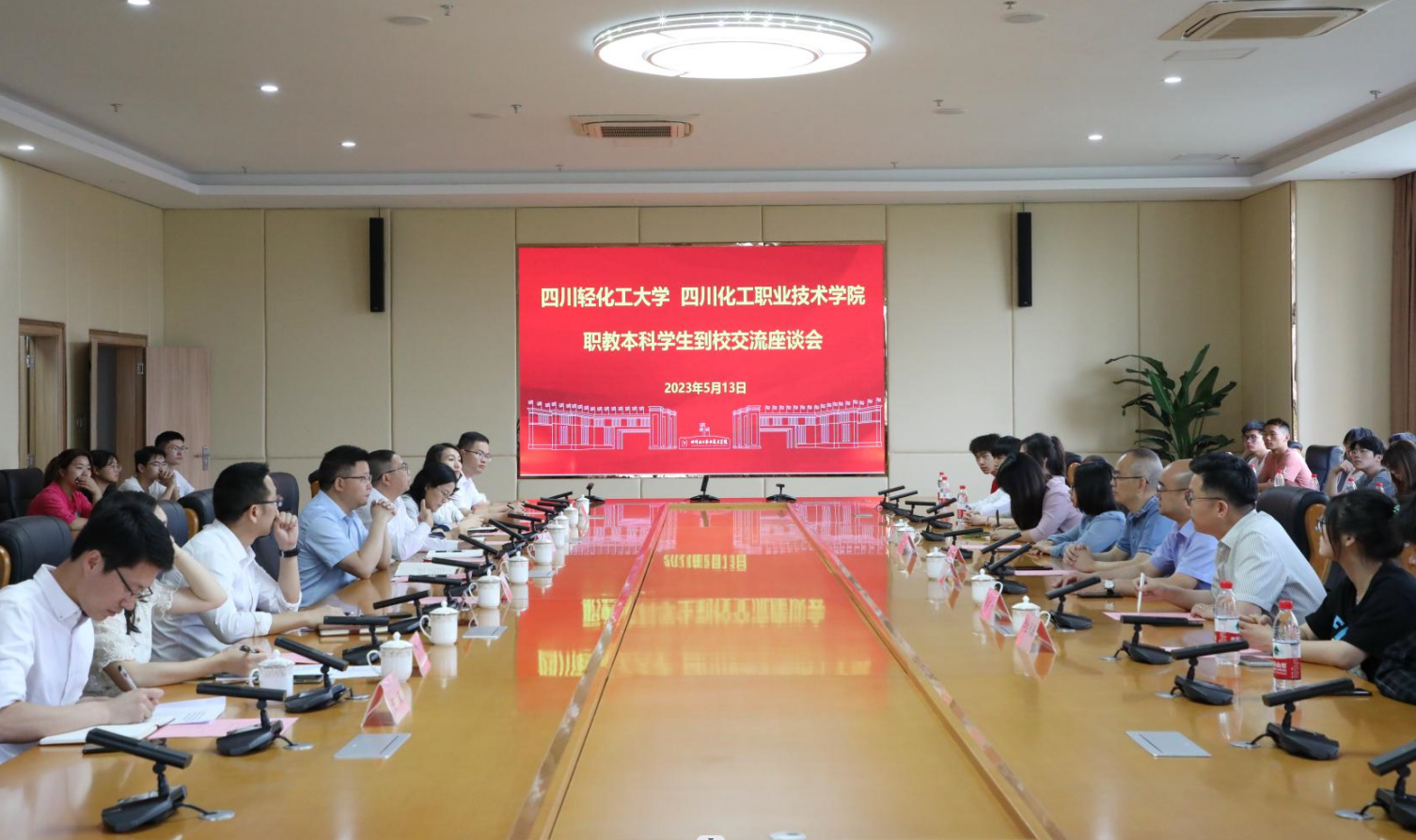 今年9月,学校与四川轻化工大学、泸天化集团有限责任公司联合培养的职教本科化学工程与工艺20221 班的28名同学,将结束在四川轻化工大学为期一年的学习和生活,来到学校护国校区继续完成学业。为了让同学们深入了解即将开始的学习和生活环境,5月13日上午,四川轻化工大学化学工程学院党委书记何泽彬、副院长程纯儒带队来校参观交流。学校党委副书记、院长文申柳,副院长邓启华、谢光杰参加交流座谈会。应用化工学院院长徐淳主持会议。