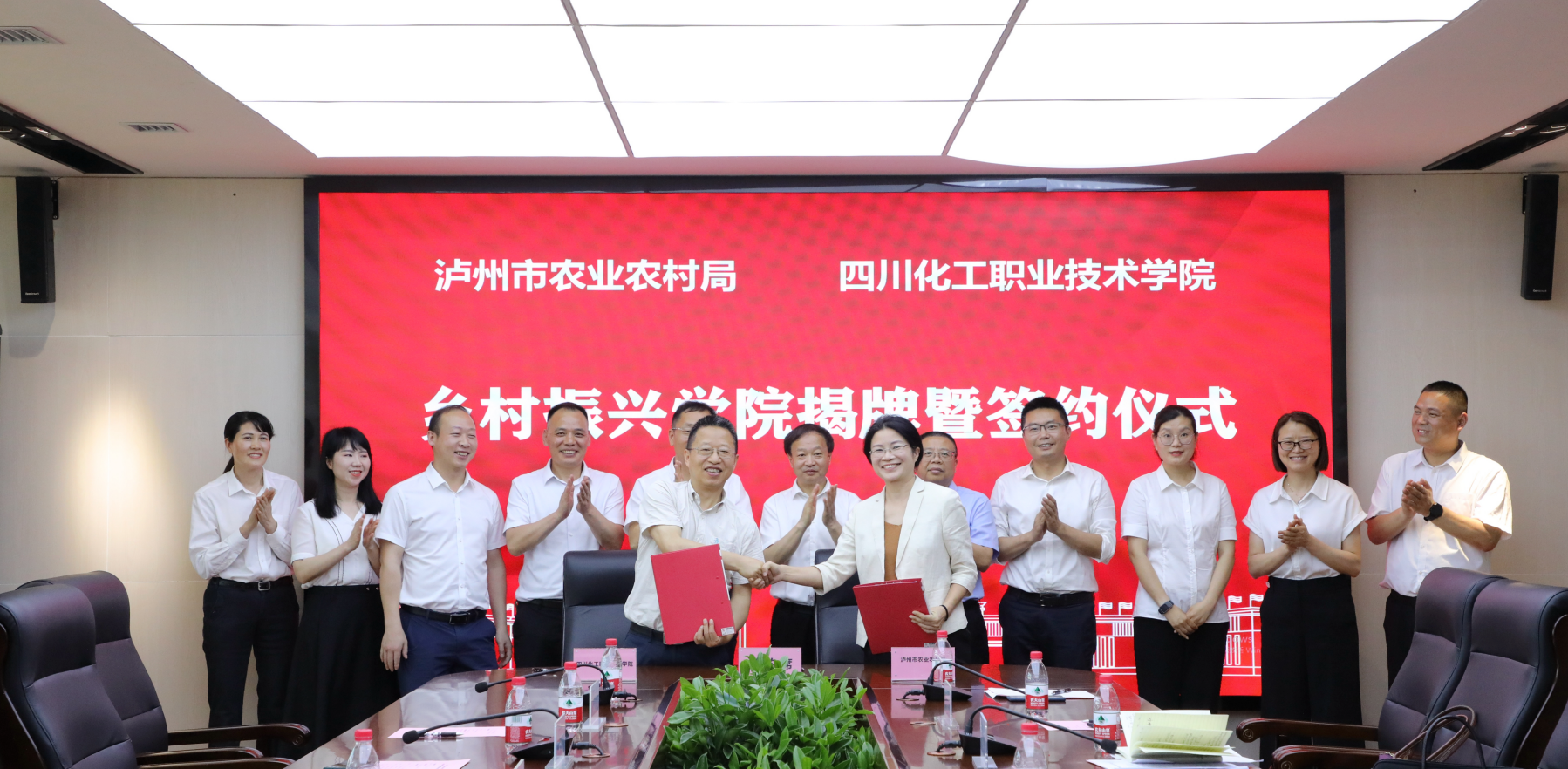 仪式上,刘志勇书记和陈廷俊局长共同为“乡村振兴学院”揭牌。常敏与蒲开伦代表双方签约。