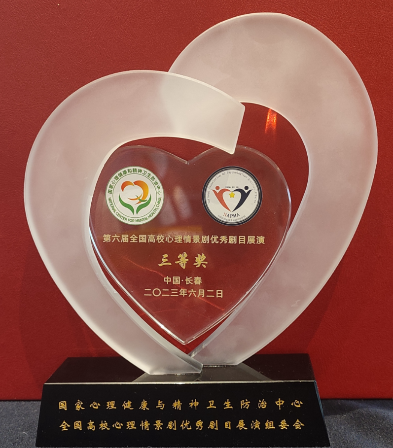 6月2日至3日,第六届全国高校心理情景剧现场展演及颁奖典礼在吉林外国语大学顺利举行。我校选送的心理情景剧《危笑》荣获全国“三等奖”。