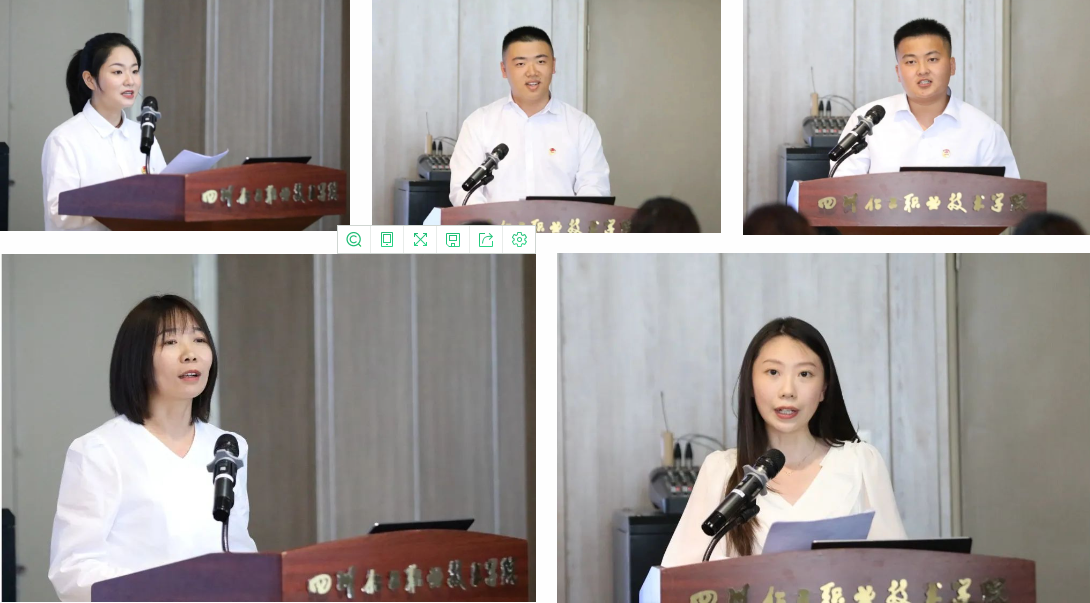 会上,青年教师代表、经济管理学院教师魏涵,2023届省优秀毕业生代表、川酒学院食品营养专业2031班苏谕涵,市优秀共青团员、机械工程学院化工装备技术专业2132班何杰,校优秀团干部、药品与环境工程学院环境工程技术专业2032班许金奎,智能制造学院团总支书记周羽乔,分享了与学校共成长、同进步、齐发展的奋斗故事、青春感悟,志存高远、脚踏实地,用青春行动践行“今日我以化院为荣,明日化院以我为傲”的奋斗目标。