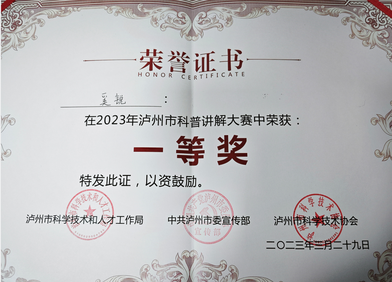 经过激烈的角逐,奚锐老师讲解的《关爱生命,“救”在身边》获得大赛一等奖,并将代表泸州市参加2023年四川省科普讲解大赛。王雪佳老师讲解的《“锂”想未来》获得比赛优秀奖。