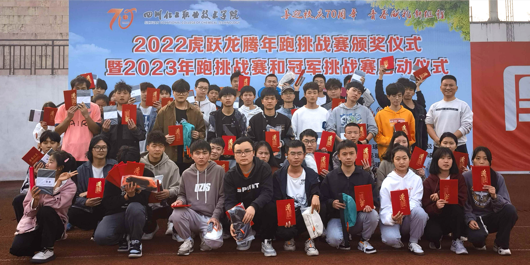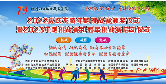 2023年3月15日,由学校刘权辅导员工作室举办的2022年度“虎跃龙腾”年跑挑战赛颁奖仪式暨2023年跑挑战赛˙冠军挑战赛启动仪式在博毅运动场举行。学校副院长谢光杰,学生处处长邓子萍、校团委书记张林园,应用化工学院党总支副书记屈超、团总支书记陈家森、辅导员刘权及参赛学生、校田径、篮球、足球、排球、乒乓球、健身协会成员参加了活动。