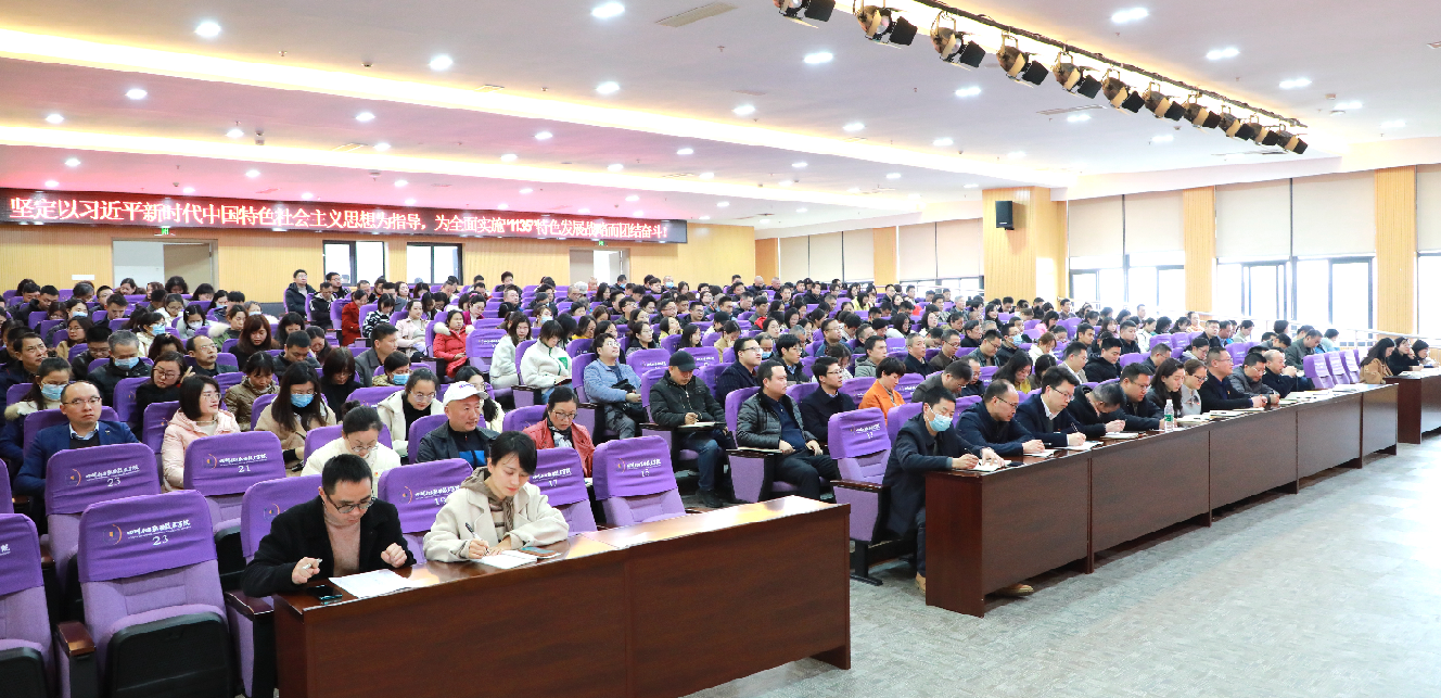 会议在学校图书馆第二学术报告厅举行,学校全体中层领导干部、全体党员、辅导员、班组长、教研室主任、人大代表、民主党派代表;组织部、人事处、计财处、基建办、资产处、后勤服务处、招生就业处全体工作人员共300余人参加会议。