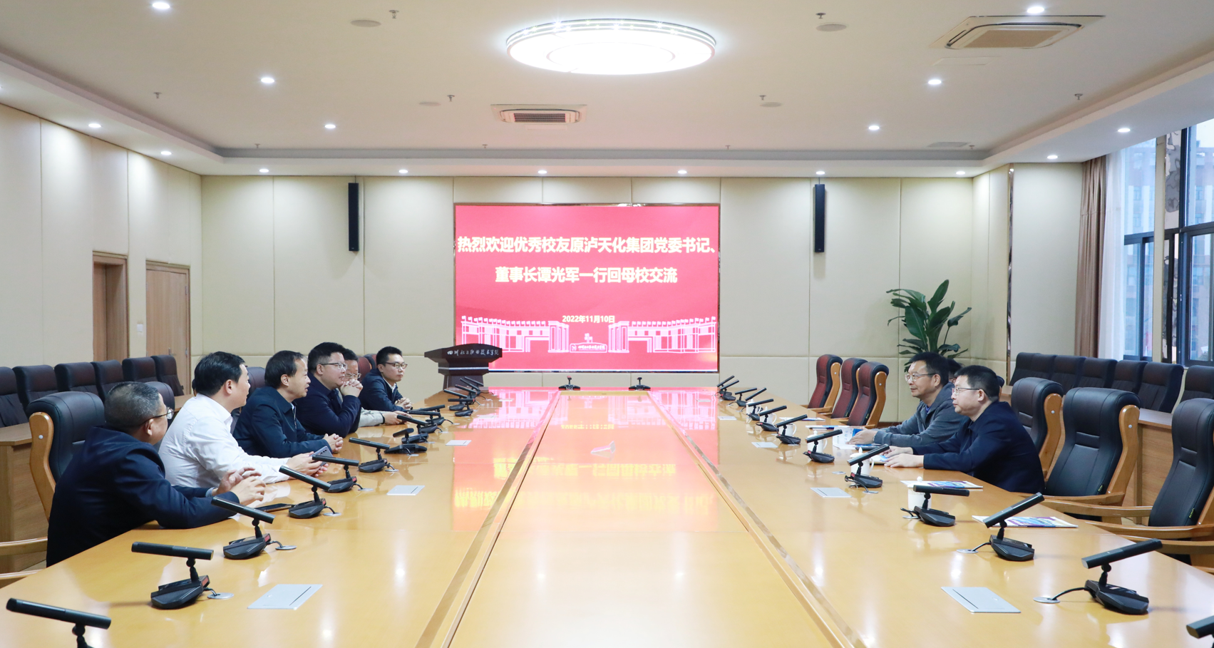 11月10日,学校优秀校友泸天化集团资深经理、原泸天化集团党委书记、董事长谭光军一行回母校交流。泸天化集团党委委员、副总经理傅利才,泸天化股份公司党委副书记、纪委书记、工会主席陈伟,学校党委书记刘志勇,党委副书记、院长文申柳,党委委员、副院长蒲开伦、王志斌、邓启华、谢光杰参加活动和交流。
