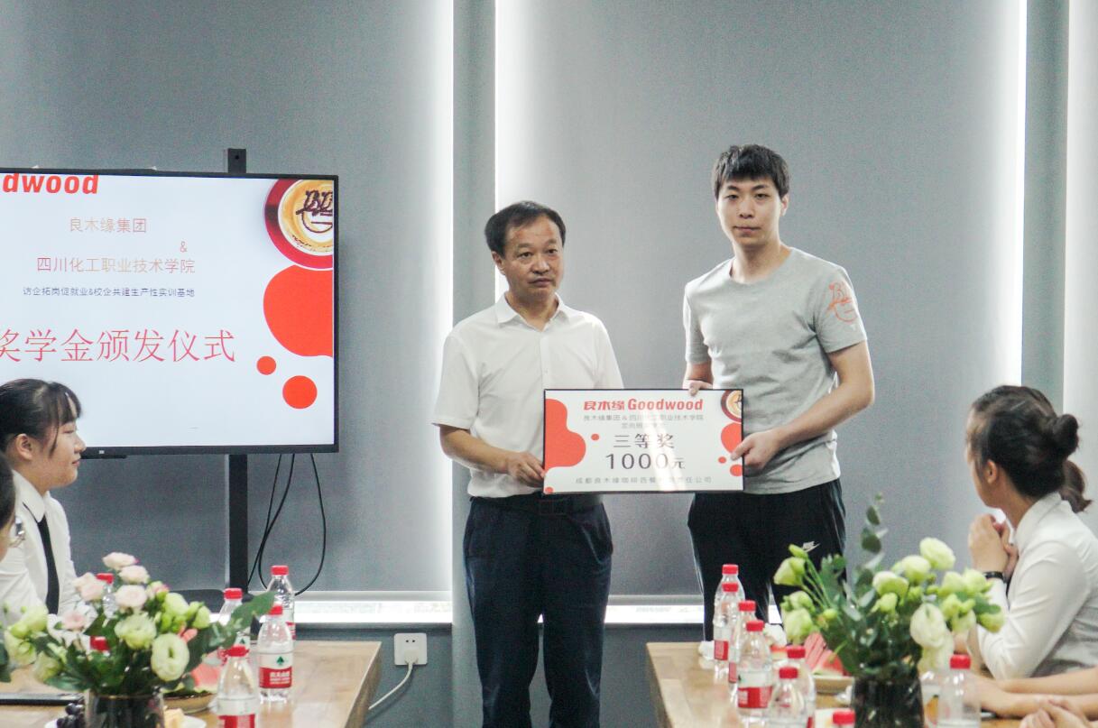 在优秀学员奖学金颁奖仪式上,刘志勇向获奖学生表示祝贺,并向订单班全体同学表示慰问,同时,向良木缘集团在人才培养方面作出的积极贡献表示感谢。良木缘集团公司总经理王钢对学校近年来为公司培养和输送近70名高质量人才表示衷心感谢,希望未来能与学校进一步深化合作,培养更多人才。学校定向班优秀学员代表进行了获奖发言。刘志勇为获奖学生颁发了奖学金证书。