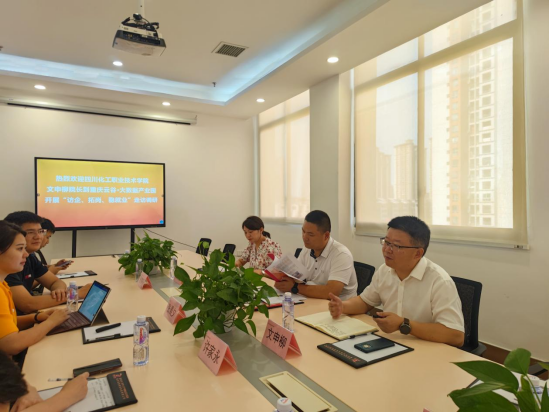 7月13日,学校党委副书记、院长文申柳带队先后走访了重庆云谷·数字人才产教融合实训基地、重庆耐德工业股份有限公司、重庆头角集团,探讨人才共育、进一步深化产教融合。重庆云谷·数字人才产教融合实训基地主任许家永、重庆耐德工业股份有限公司总经理段潇、重庆头角集团总经理皮睿陪同调研。