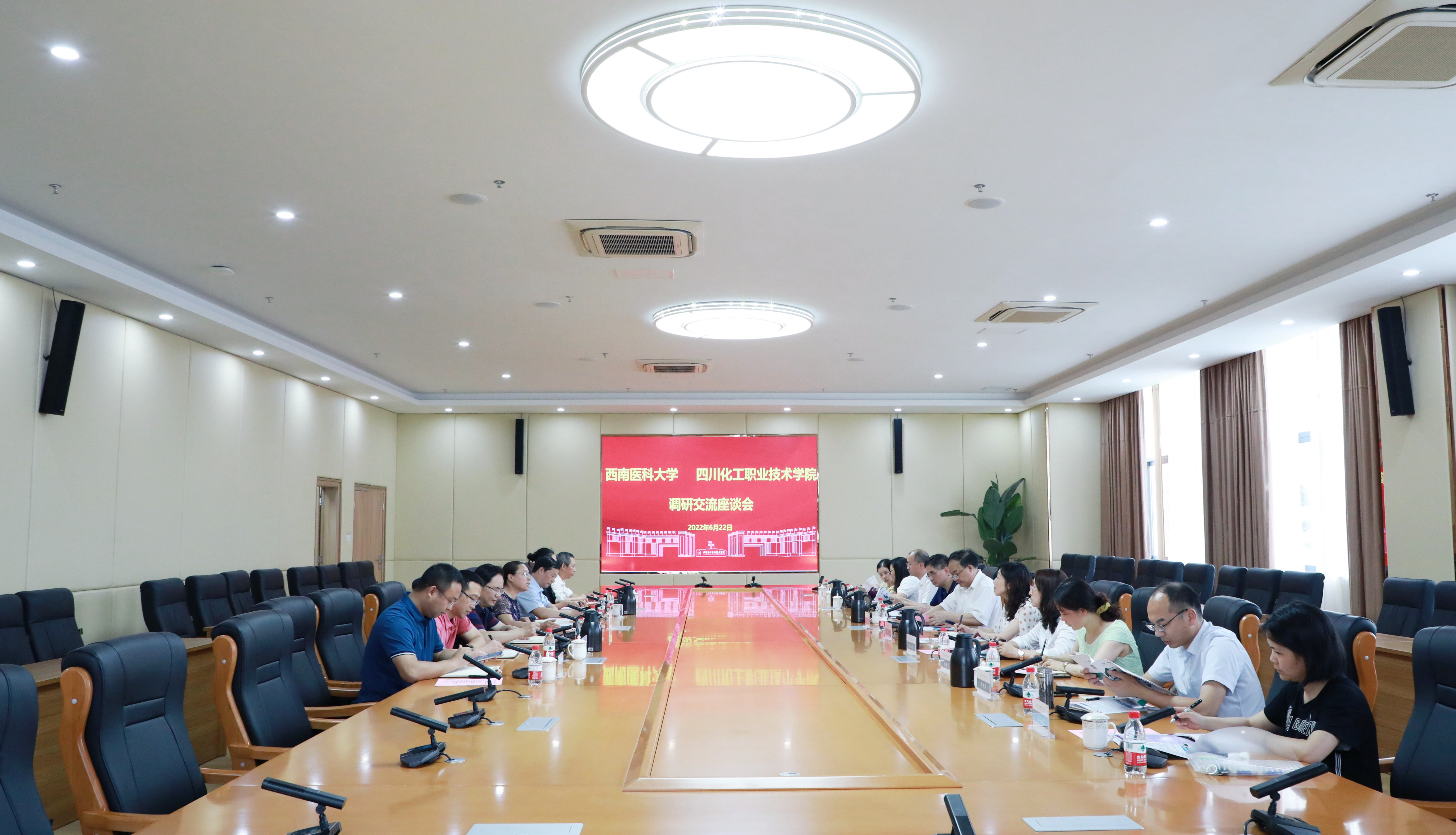 交流会上,陈淑娟介绍了学校发展概况、办学历程及近年来取得的成绩。她指出,长期以来,学校与西南医科大学同住酒城,共饮一江水,结下了深厚的友谊。希望与西南医科大学继续不断加强沟通和交流,学习西南医科大学先进办学经验,助推学校发展迈上新台阶,为谱写职业教育新篇章贡献化职院力量。王志斌从共建实训基地、开发课程、聘请企业人员授课等方面介绍了学校校企合作、产教融合等工作开展情况。