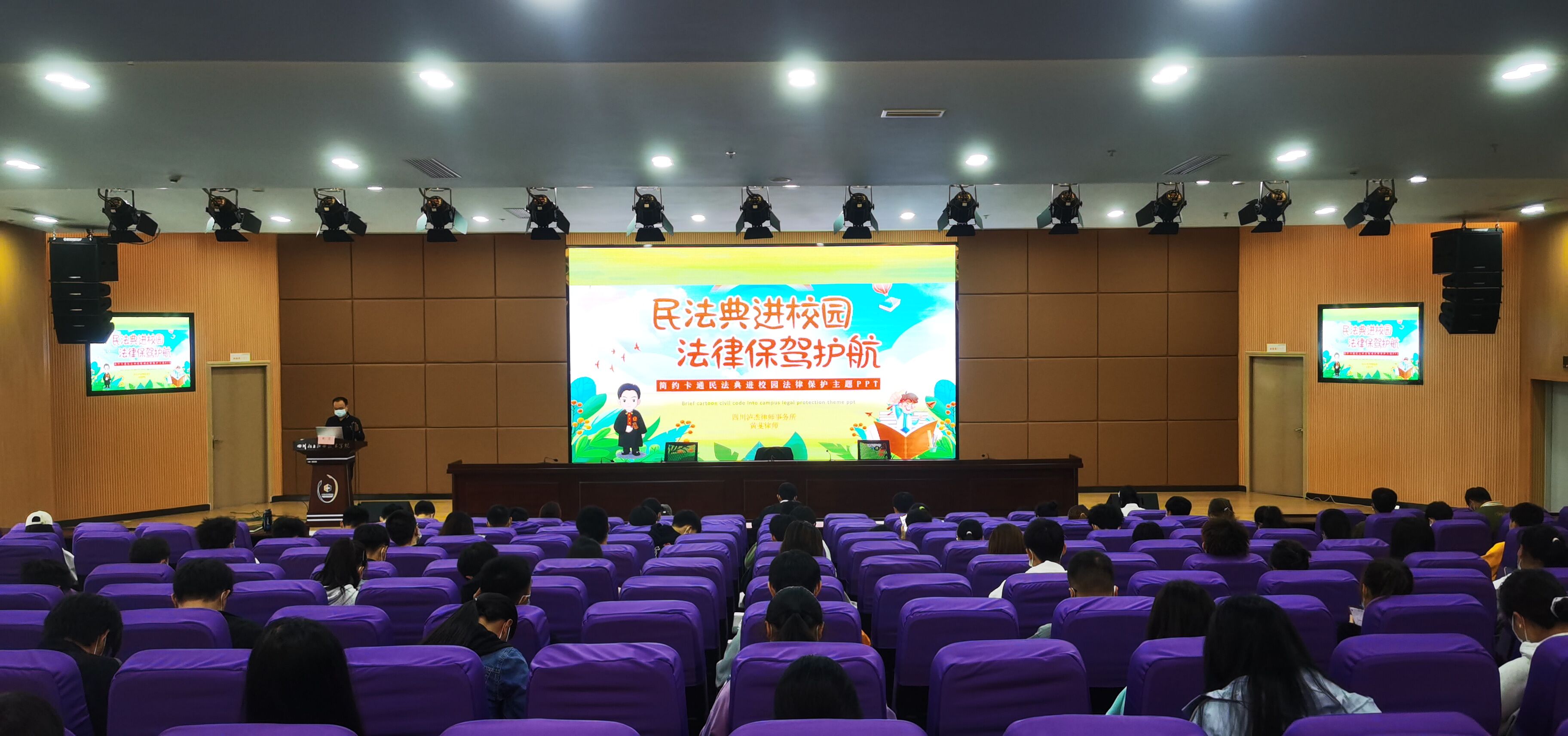 为了深入学习贯彻习近平总书记关于民法典的重要指示精神,在学校广泛开展民法典普法工作,2022年5月18日下午,学校在图书馆第二报告厅举办了《民法典》宣传讲座,邀请学校法律顾问黄斐律师作专题宣讲。学校学生代表100余人参加学习。