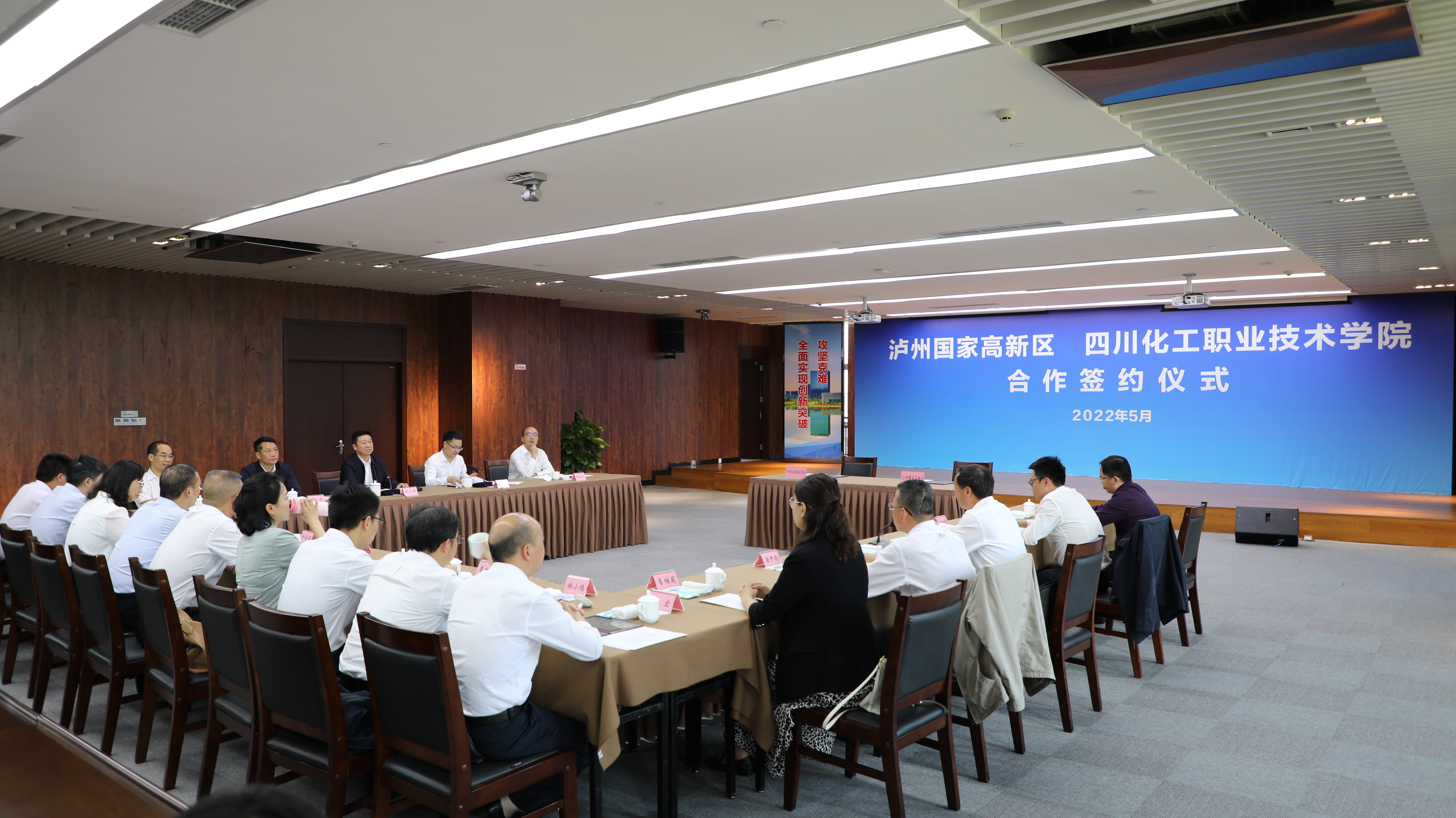 泸州国家高新区党政办公室、经济发展局、科技和人才工作局、对外合作和交流局、社会事业和农林工作局主要负责人,学校党政办公室、党委宣传部、招生就业处、机械工程学院、智能制造学院负责人及相关工作人员参加签约仪式。