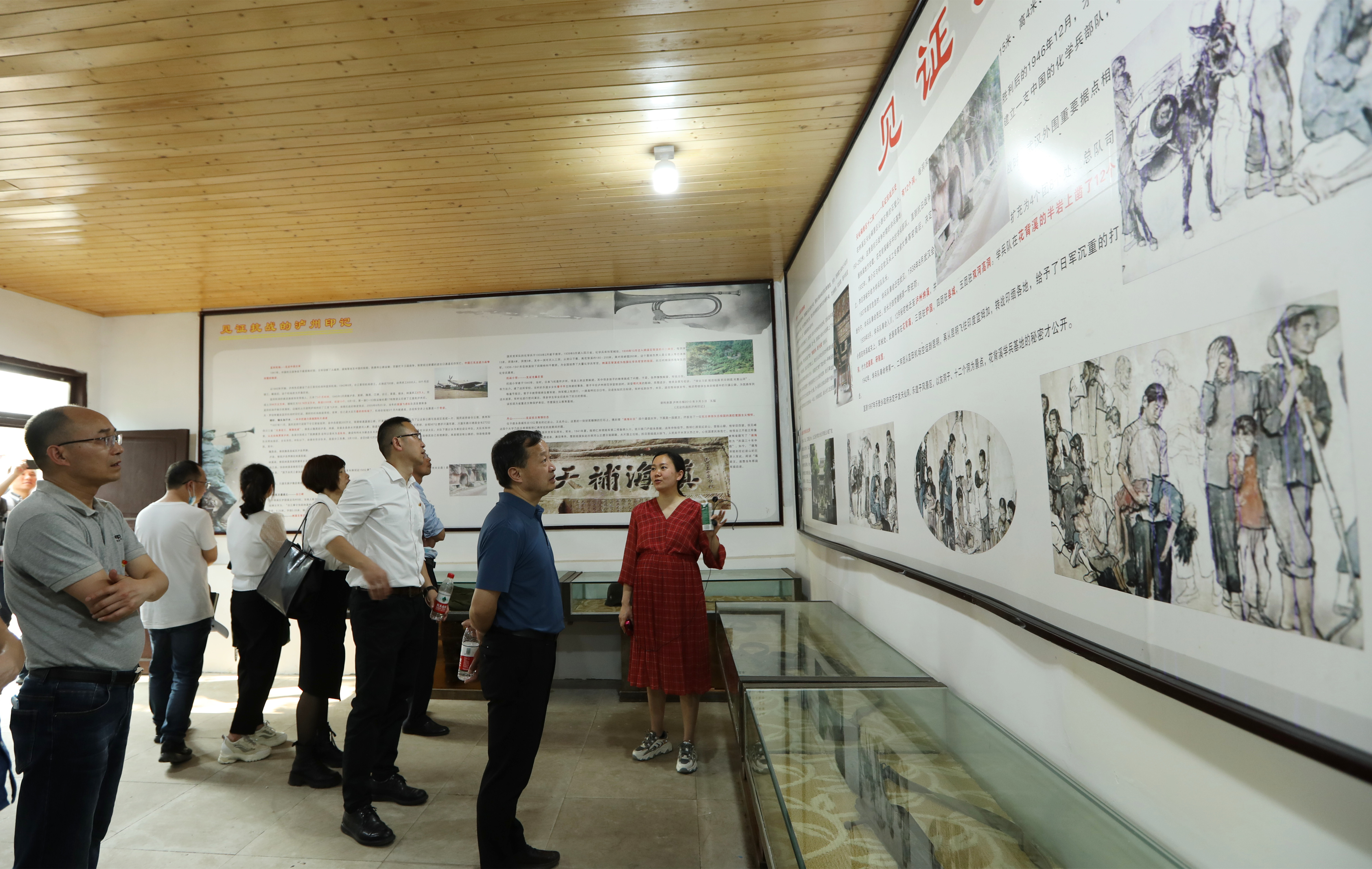 全体党员在讲解员的带领下,怀着敬畏之心参观了抗战小学及展室内容,通过丰富的史料图片、实物展品与雕塑,直观感受到那段抗战时期特别是泸州纳溪抗战的革命历史,加深了党员同志对地方革命历史的了解和对伟大民族精神的领会。一张张弥足珍贵的照片、一件件锈迹斑斑的物品,仿佛将大家带回到那段革命先烈为民族独立和解放、为人民自由与幸福浴血奋战、舍生忘死的峥嵘岁月,大家深切体会到了先烈们抛头颅洒热血的献身精神和不屈不挠的斗争精神,接受了一次生动的革命传统教育和爱国主义教育。