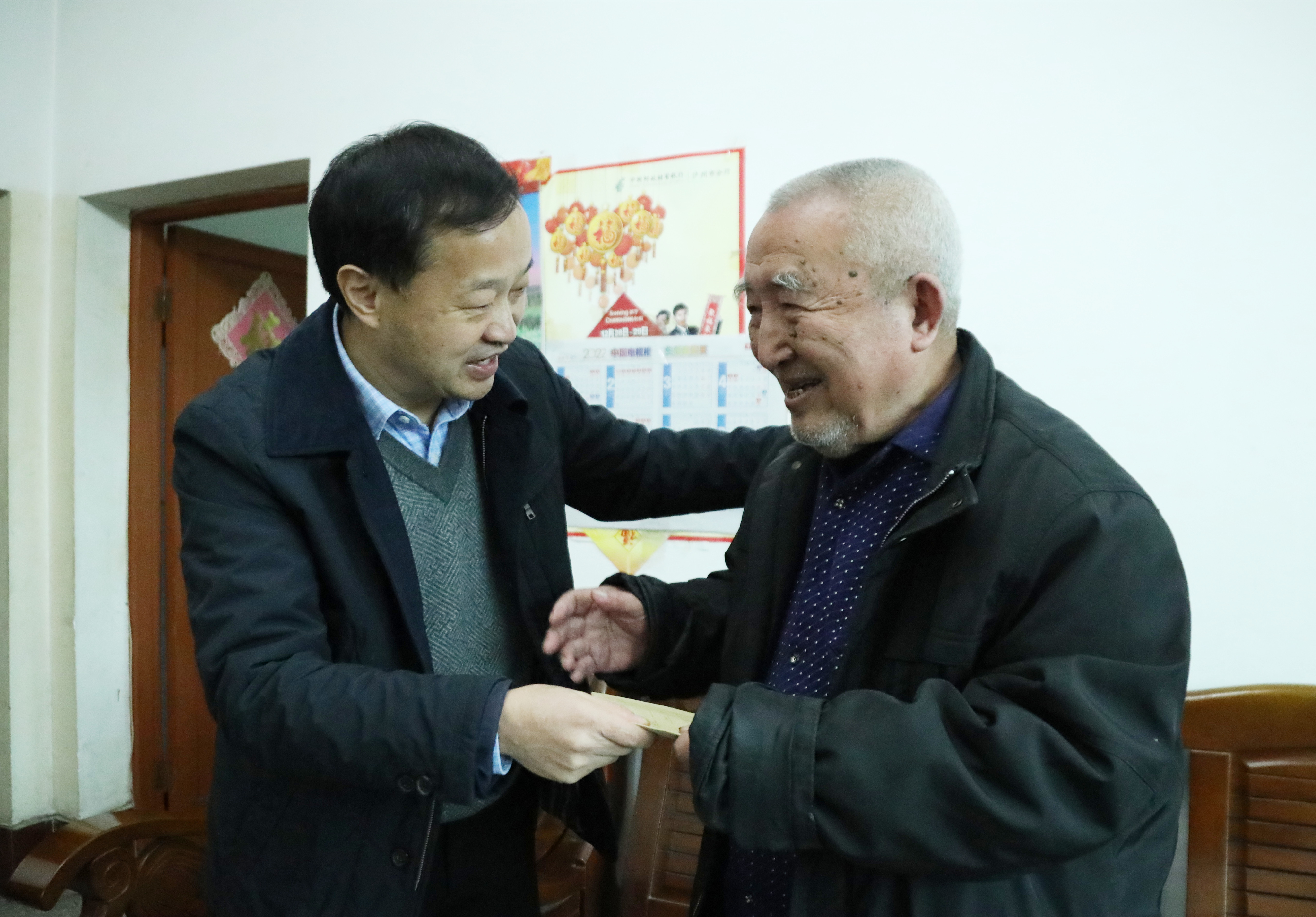 走访慰问期间,首先在离退休党总支会议室召开了离退休老同志2022年春节座谈会。全体校领导及离退休老同志代表参加座谈会,陈淑娟主持座谈会。