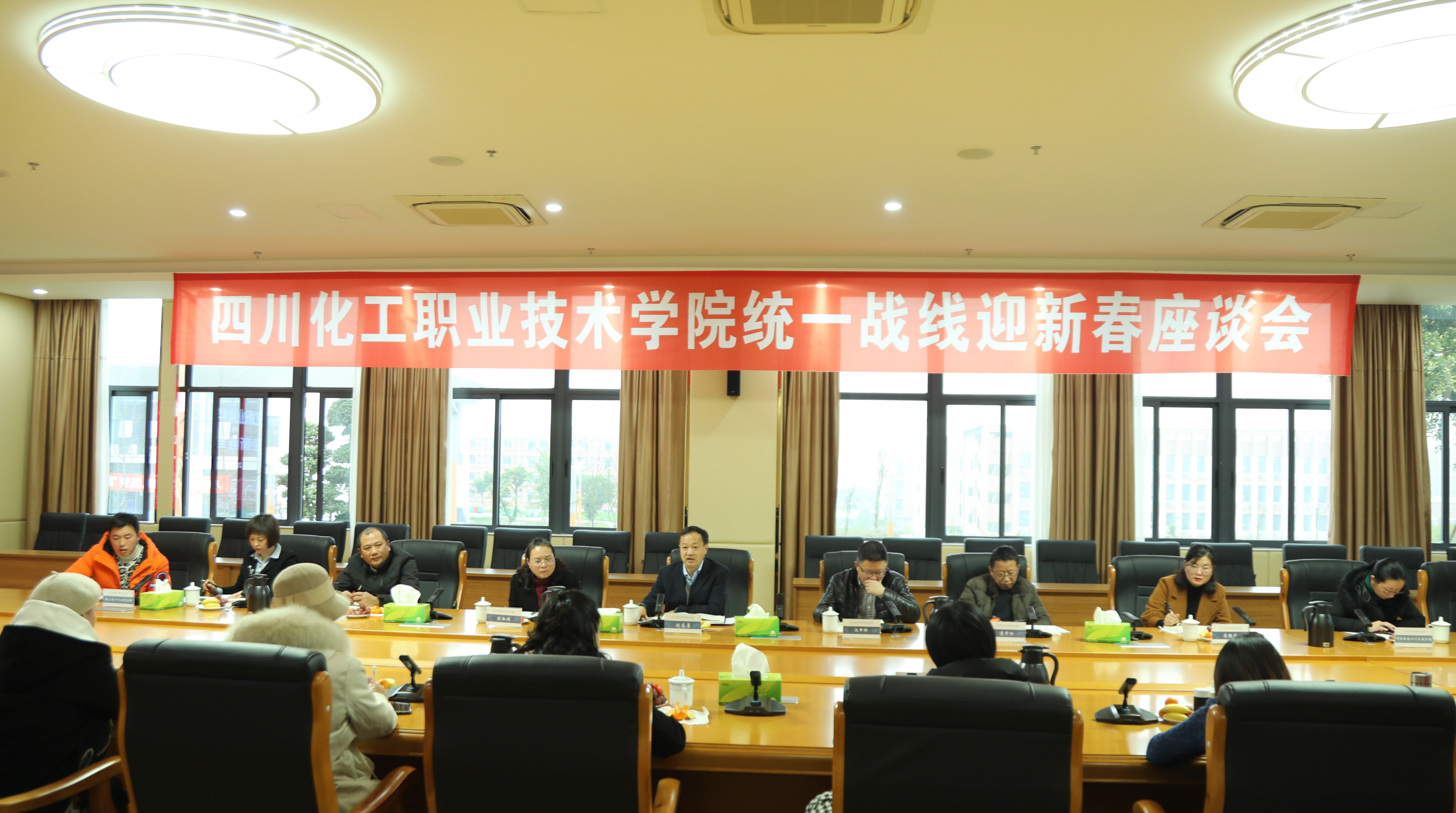 1月7日,学校统一战线迎新春座谈会在综合办公楼第一会议室举行。学校党委书记刘志勇,党委副书记、院长文申柳,副院长蒲开伦与党委组织部、党委统战部负责人及学校统一战线代表相聚一堂,共谋学校发展,喜迎新春佳节。座谈会由党委副书记陈淑娟主持。