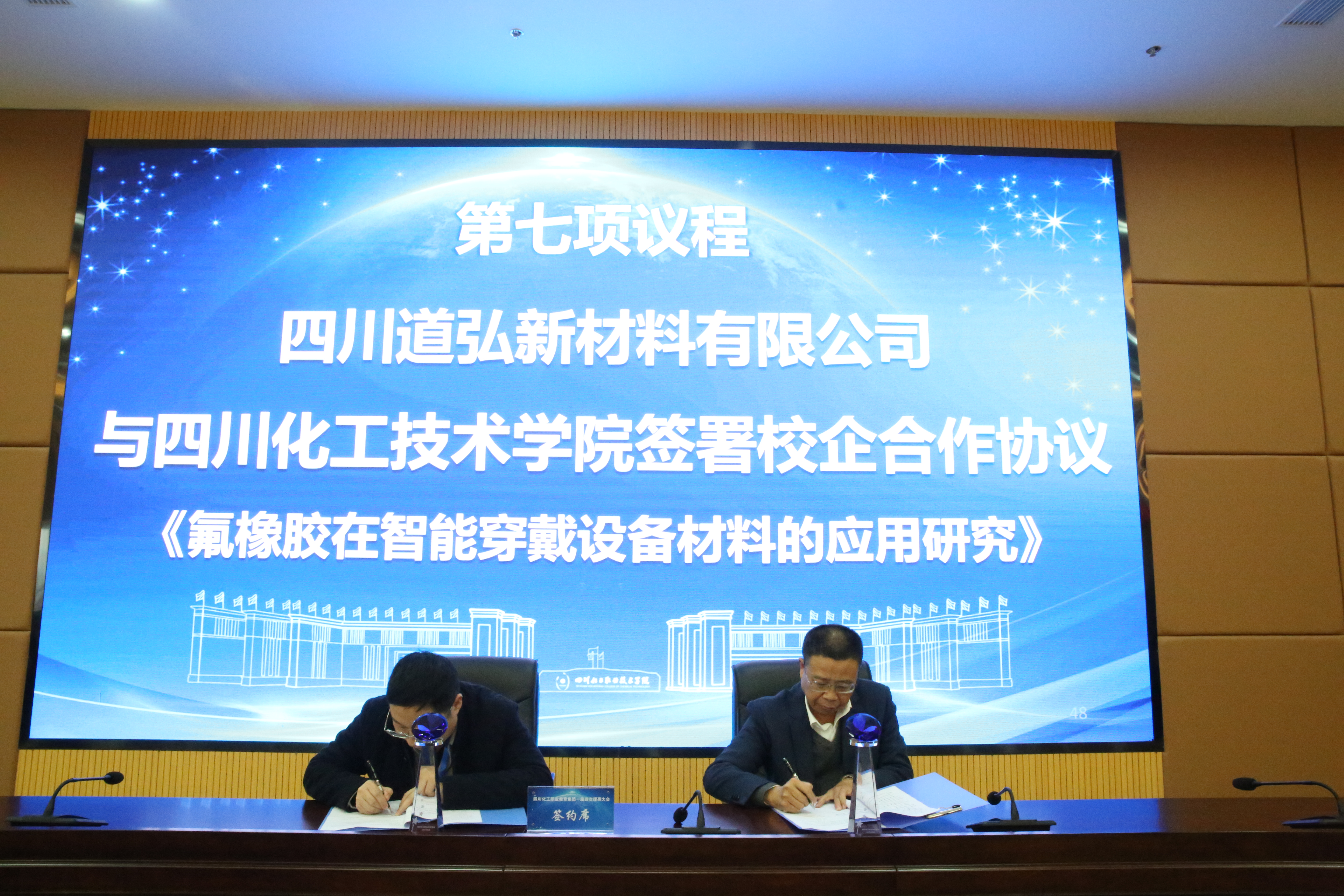 最后,四川道弘新材料有限公司副总经理张利朋与学校副院长邓启华代表双方签署校企合作协议。