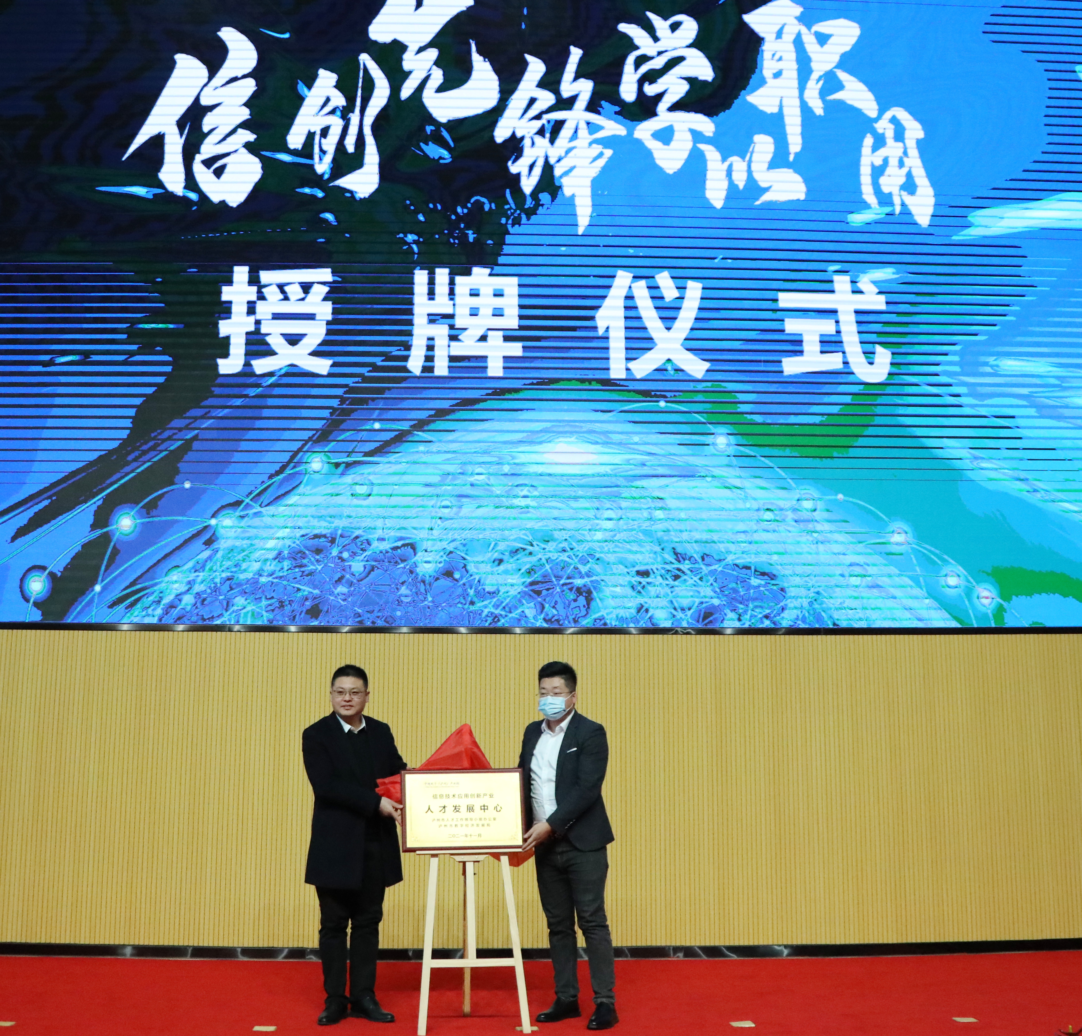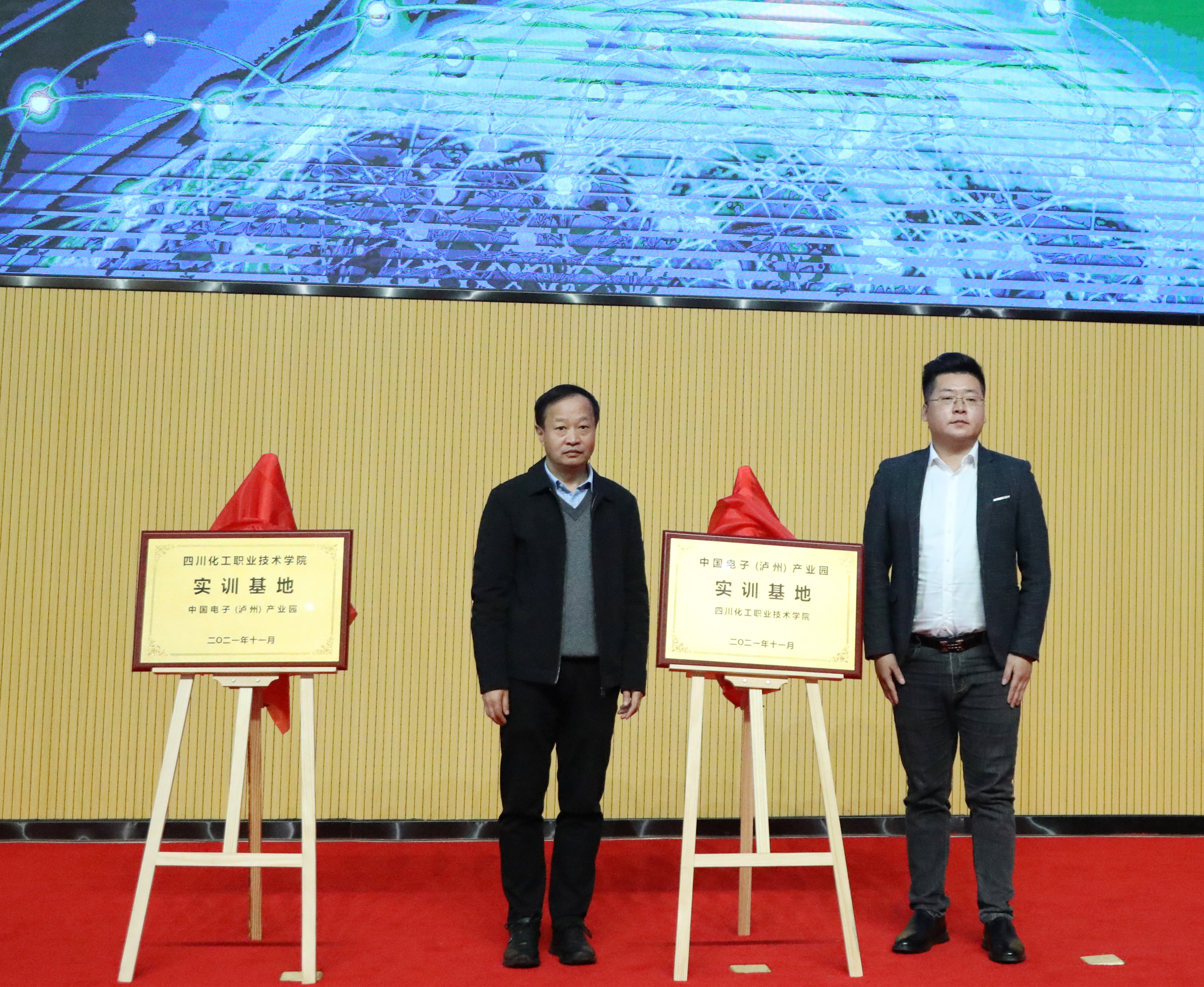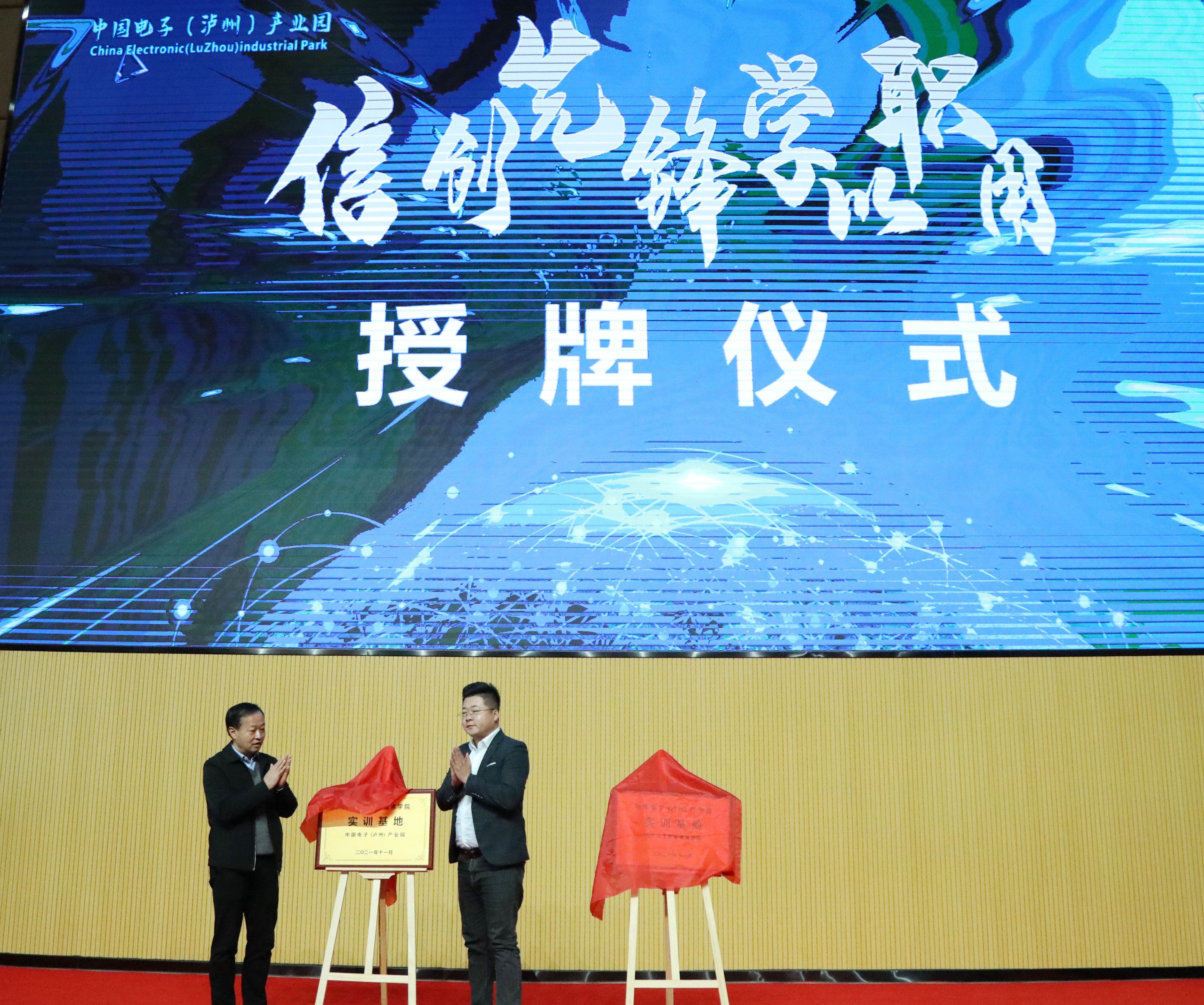 会上,中共泸州市委组织部部务委员刘海涛、中国电子(泸州)产业园副总经理刘腾共同为“信息技术应用创新产业人才发展中心”揭牌,学校党委书记刘志勇、刘腾副总经理共同为“中国电子(泸州)产业园、四川化工职业技术学院双实训基地”揭牌。