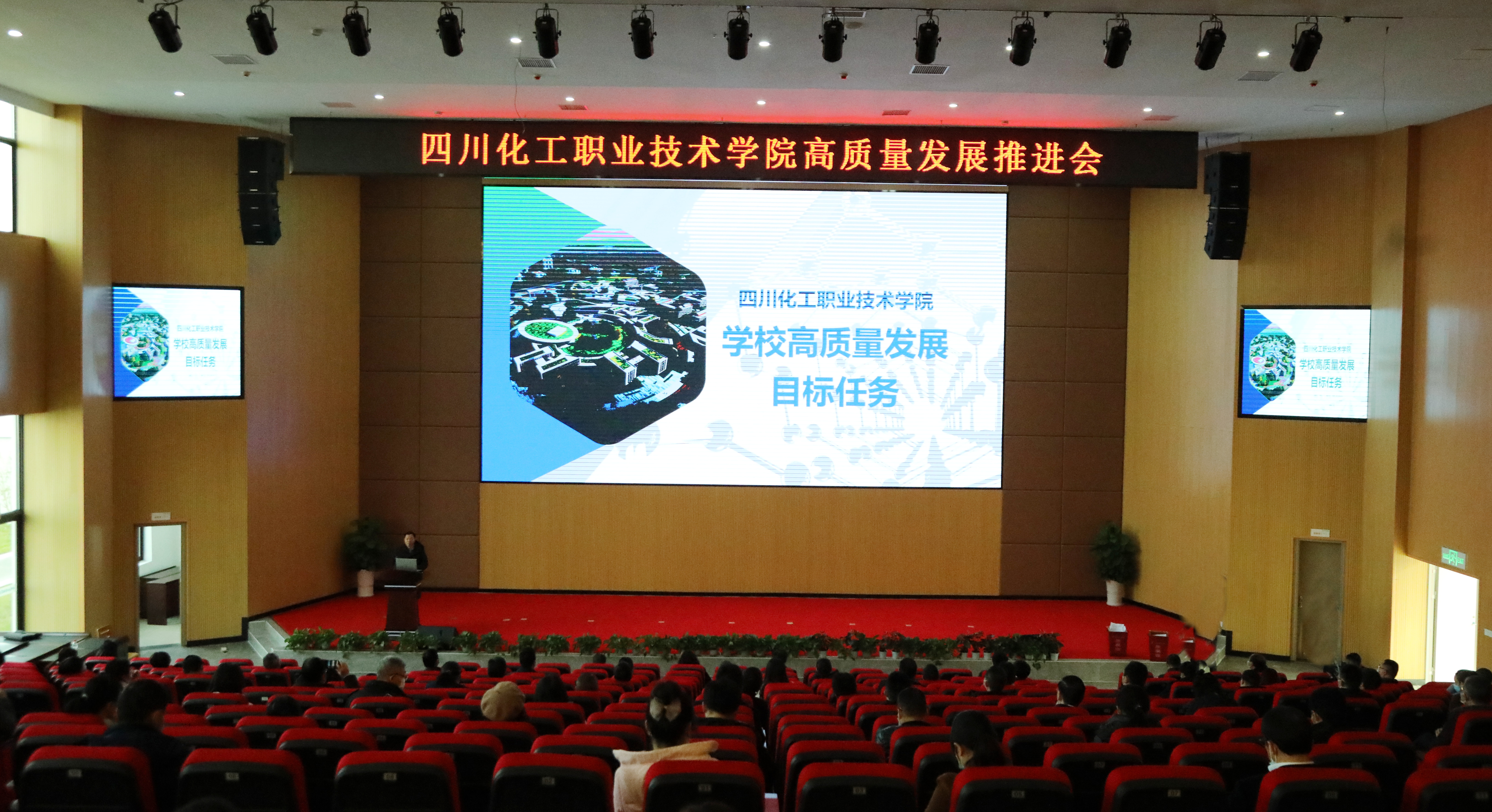 12月1日,学校在第一报告厅召开高质量发展推进会,学校党委书记刘志勇、副书记陈淑娟、副院长蒲开伦、王志斌、邓启华参加会议。