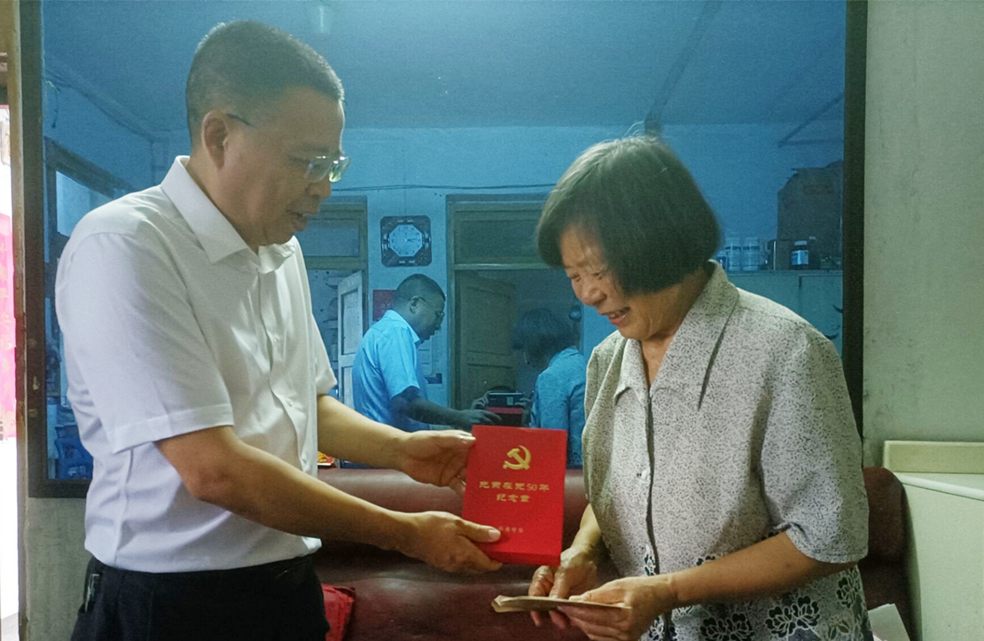 党委副书记陈淑娟、副院长蒲开伦、王志斌、邓启华分别看望慰问了学校部分党龄超过50年的老党员鲁玉勤、邱克忠、陈昌友等老同志,并向他们颁发了“光荣在党50年”纪念章,倾听他们讲述在党的领导下艰苦奋斗的难忘经历,一起回顾我们党的百年光辉历程。老同志们信念坚定、对党忠诚,牢记宗旨、服务群众,对党的事业忠心耿耿,为学校发展建设默默奉献了一辈子,是学校的宝贵财富,也是我们永远学习榜样。