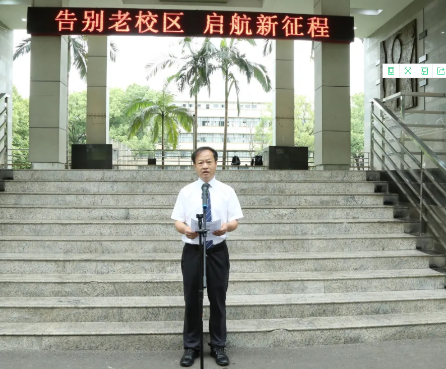 上午,学校全体校领导及中层以上领导干部齐聚行政楼大厅,或细语轻昵,或深情回眸,并合影留念。随后,学校院长文申柳主持活动,学校党委书记刘志勇作告别老校区讲话。
