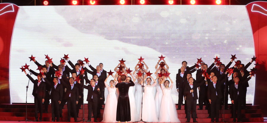 11支参赛队伍、2支表演队伍的表现精彩绝伦,整个比赛现场欢歌如潮,惊喜不断,在合唱基础上,各代表队在表演中纷纷融入朗诵、舞蹈等艺术形式,《爱我中华》《中国,中国,鲜红的太阳永不落》《不忘初心》等一首首立意鲜明、脍炙人口的红色经典歌曲,充分展现了广大师生积极向上、砥砺奋进的精神风貌。