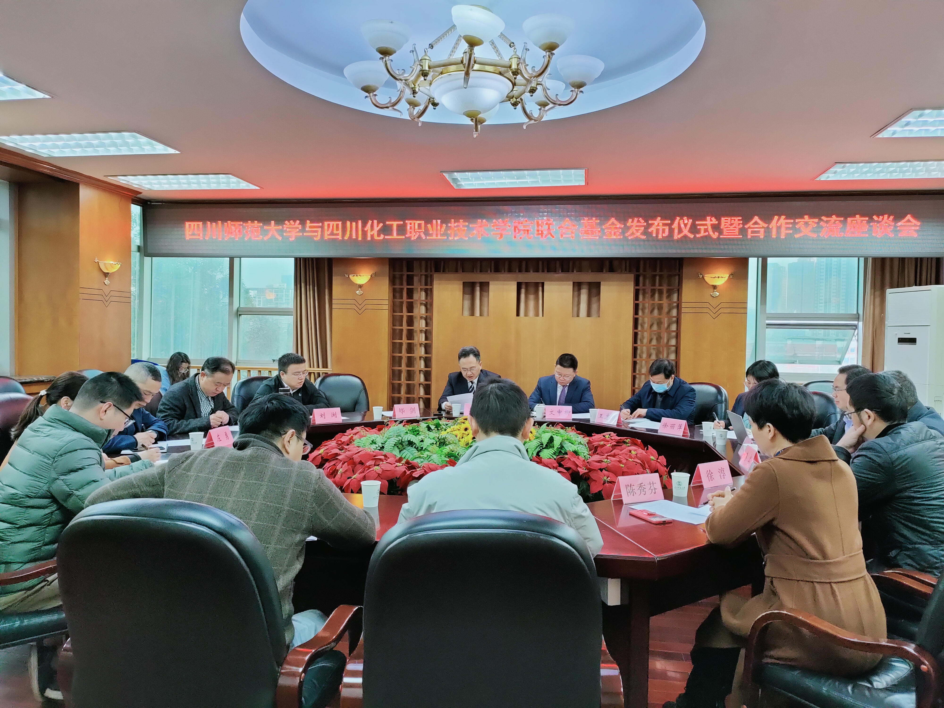 3月22日,学校院长文申柳、副院长王志斌带队到四川师范大学参加可视化计算与虚拟现实四川省重点实验室联合基金发布仪式暨合作交流座谈会。会议由四川师范大学可视化计算与虚拟现实四川省重点实验室主任刘浏主持。