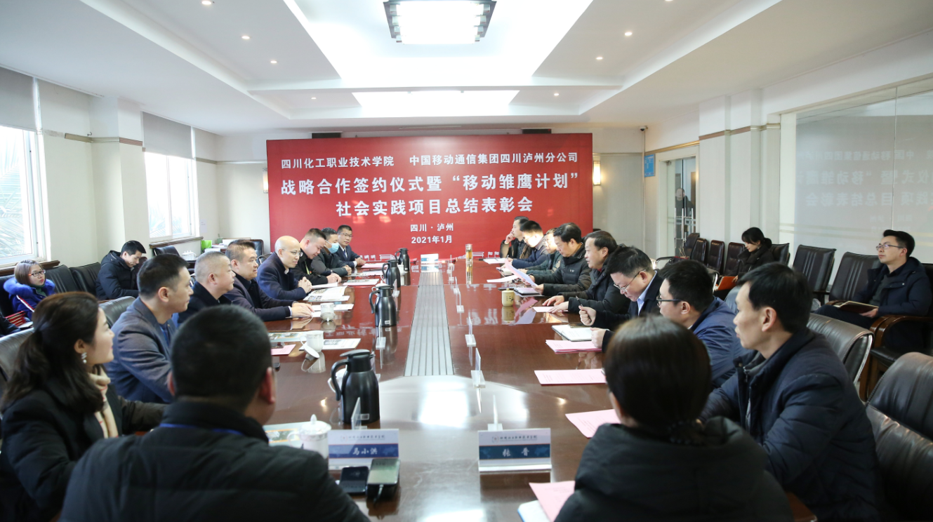 1月18日,学校与中国移动通信集团四川泸州分公司战略合作签约仪式暨“移动雏鹰计划”社会实践项目总结表彰会在行政楼三楼会议室举行。中国移动通信集团四川泸州分公司党委书记兼总经理胡幼频、副总经理吴福强、唐智勇,学校党委书记刘志勇、副院长文申柳、邓启华参加会议。副院长王志斌主持会议。