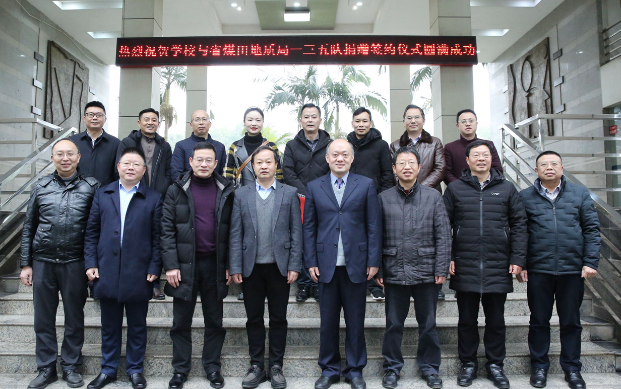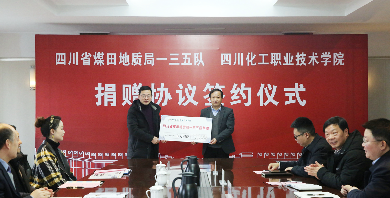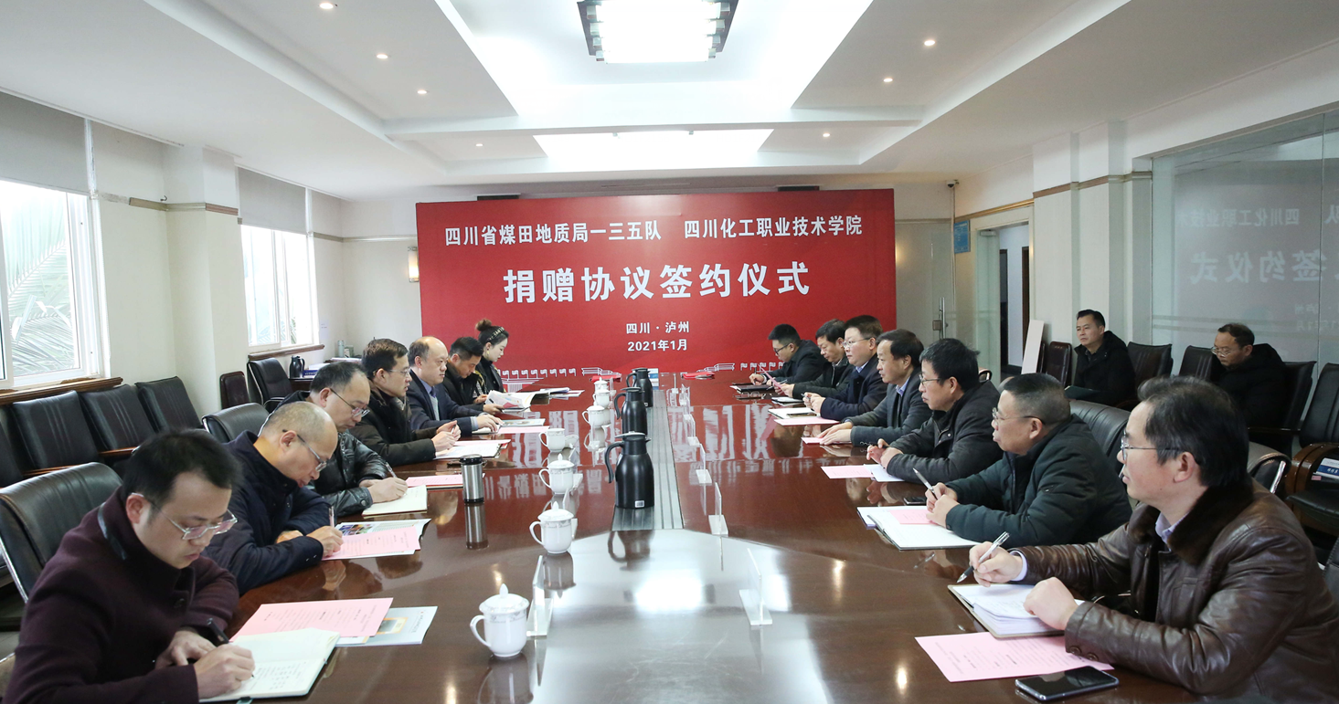 1月26日,学校与四川省煤田地质局一三五队捐赠签约仪式在行政楼三楼会议室举行。四川省煤田地质局一三五队队长戴敬儒、党委书记岑学农、纪委书记何青云、副队长朱承斌、总工程师吴永贵,学校党委书记刘志勇、院长文申柳、副院长蒲开伦、邓启华参加了捐赠仪式。捐赠仪式由副院长王志斌主持。