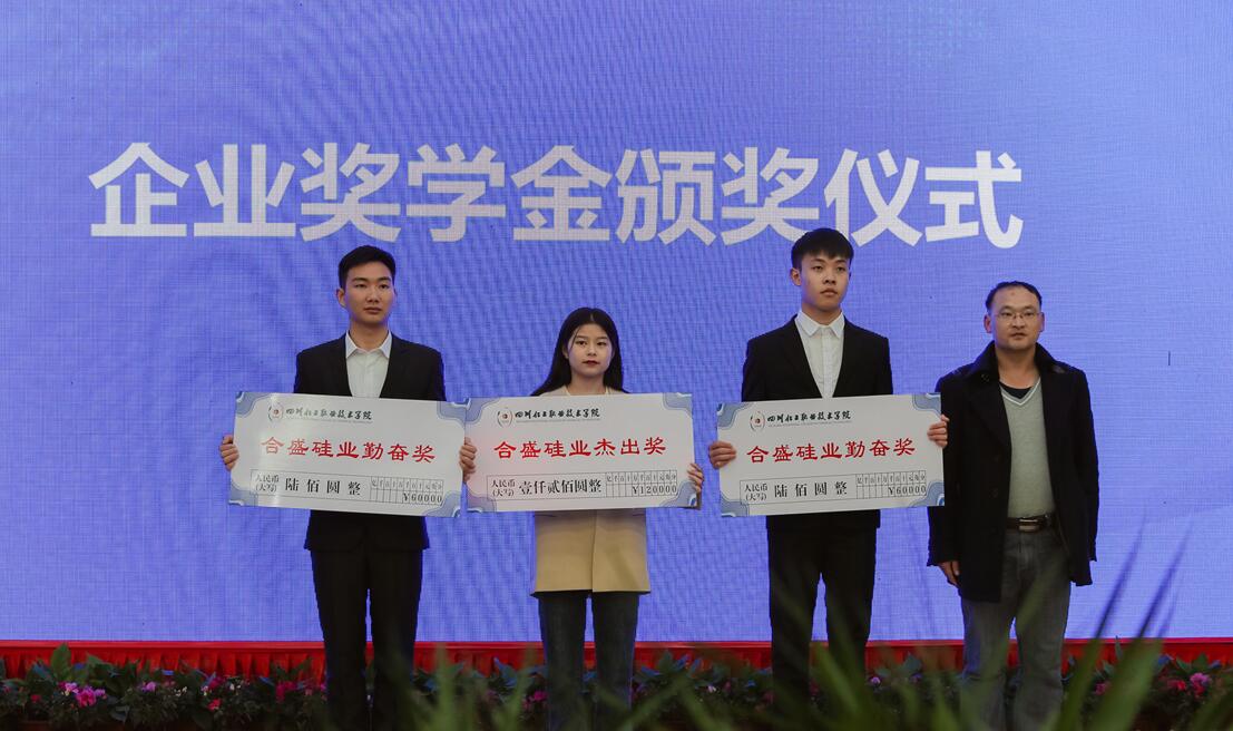会上,学校聘请泸州老窖集团董事长张良为学校首席专家,聘请川酒集团董事长曹勇为学校特约专家,颁发了聘书;并举行了合盛硅业奖学金、利尔化学股份有限公司全资子公司江苏快达农化奖学金颁奖仪式。