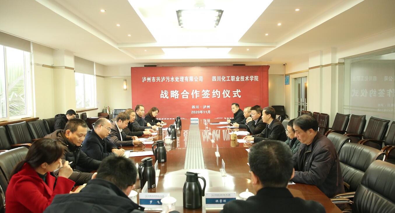 在与会人员的共同见证下,市兴泸污水处理有限公司副总经理贺萍与学校文申柳副院长共同签署了《泸州市兴泸污水处理有限公司·四川化工职业技术学院战略合作框架协议书》。