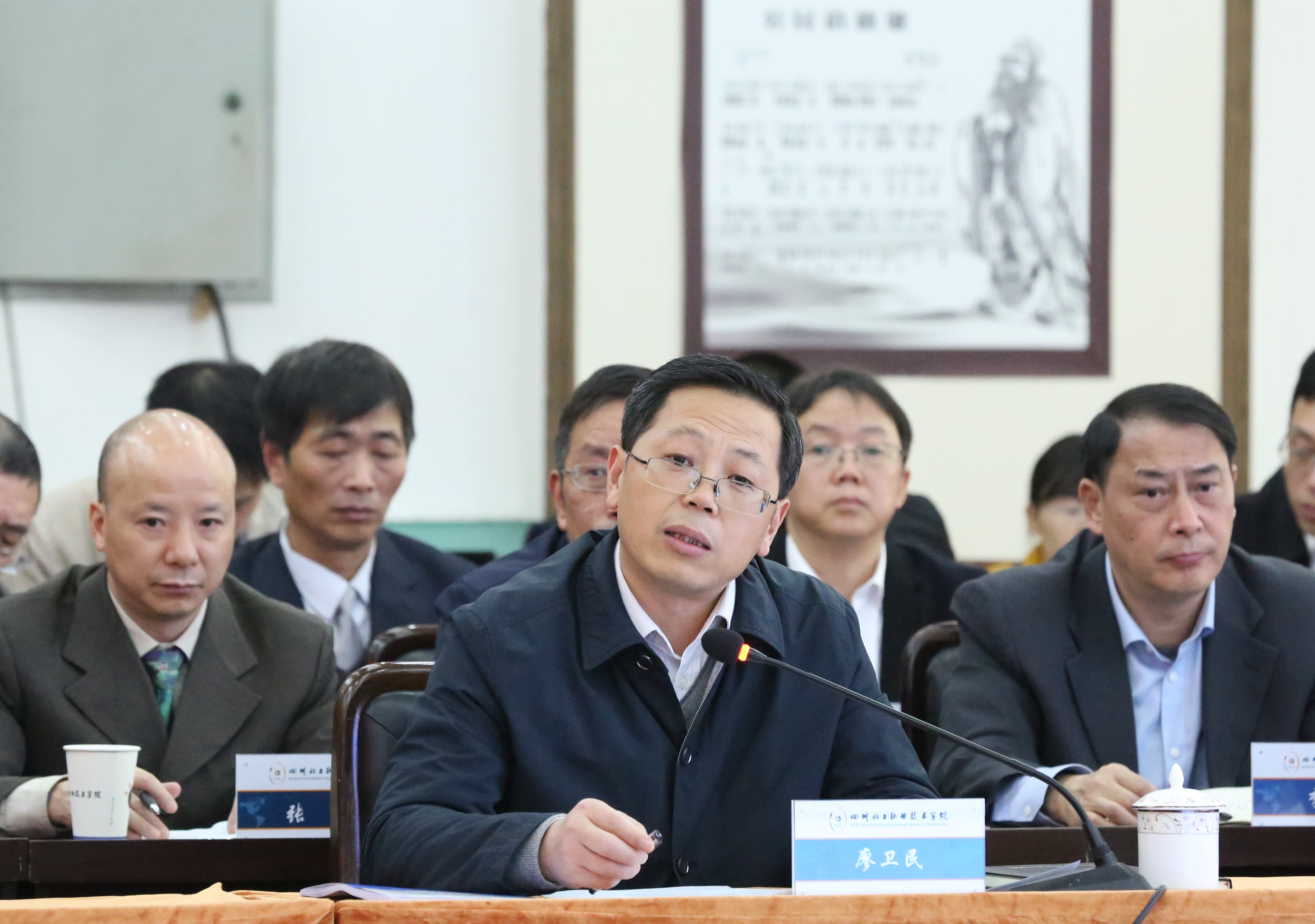 廖卫民代表省经信厅对各位专家莅临学校进行优质校建设现场验收表示热烈欢迎和衷心感谢!并指出,优质校建设计划的实施,对全面提升我省高等职业教育发展质量、加快培育大批具有专业技能与工匠精神的高素质劳动者和人才具有重要意义。川化职院要以此次现场验收为契机,进一步加强教育教学改革,不断总结经验做法,加强优势专业、优势学科、优势项目的示范引领、辐射带动作用,全力推动学校各项事业高质量发展。
