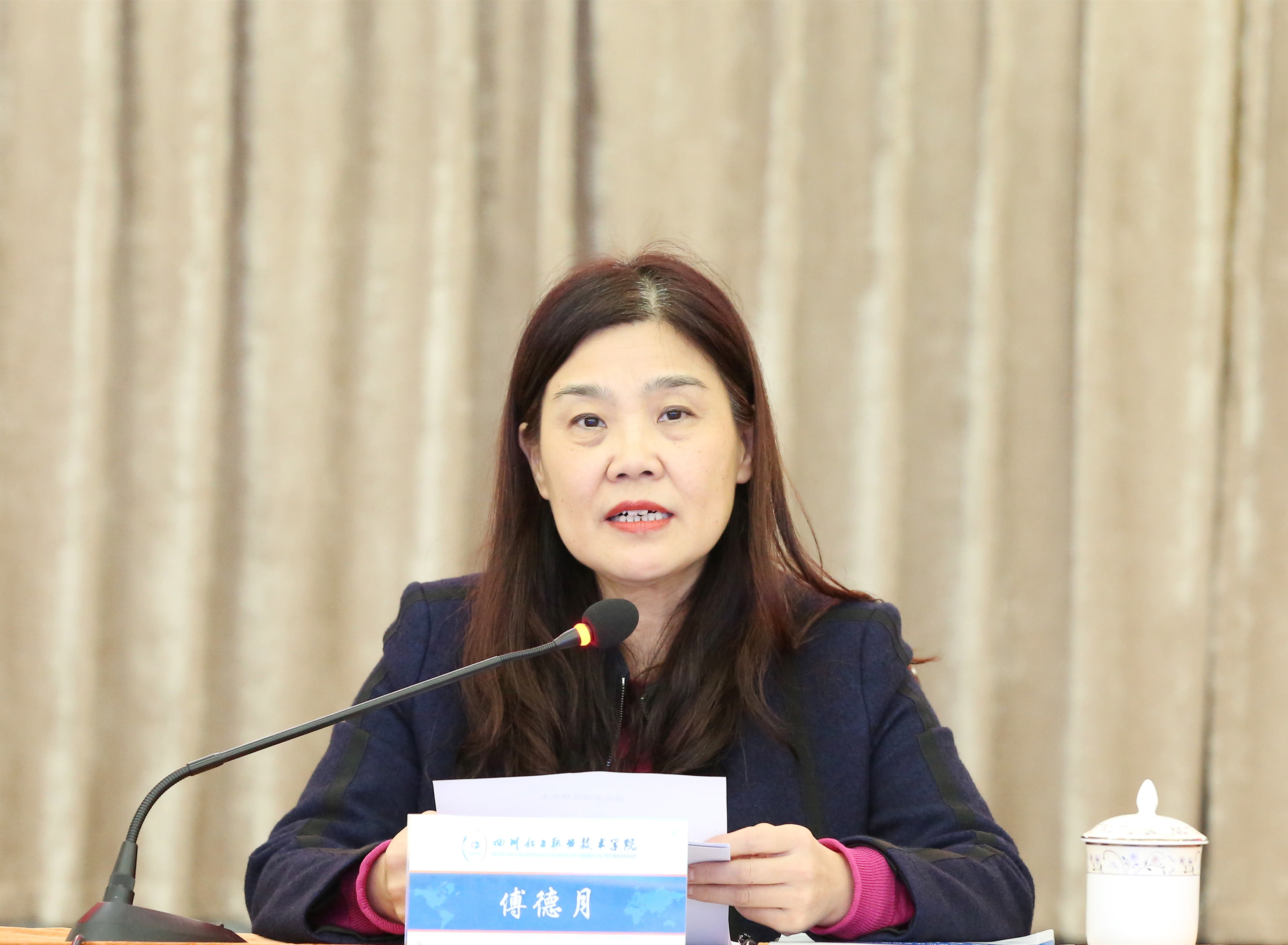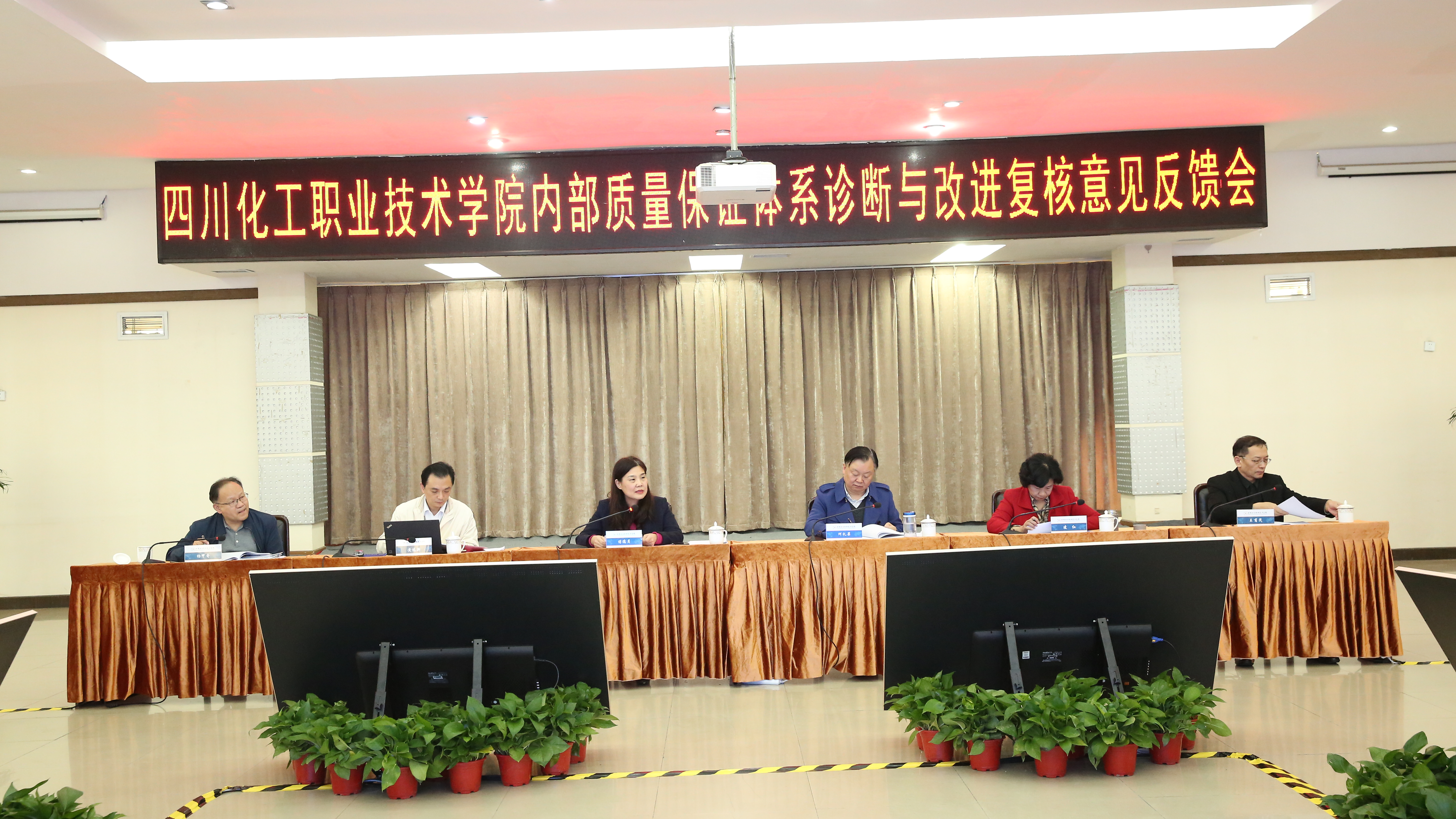 专家组组长傅德月教授代表专家组宣读诊改复核反馈意见。她指出,专家组在前期网上审阅了学校的诊改工作材料,从体系建设与运行、引擎驱动与成效、平台建设与运用、复核汇报材料四个方面初步了解学校诊改工作状态,形成了网上复核意见。现场复核期间,通过审阅资料、听取汇报、现场查看、访谈和座谈等形式,复核了学校内部质量保证体系的建设和运行情况,经专家组讨论,形成了复核意见。专家组对学校诊改工作开展以来取得的成效给予充分肯定,并希望学校进一步完善内部质量保证体系建设与运行实施方案,深入总结诊改工作经验,深度开展理论与实践研究,进一步发挥信息化平台在诊改过程中的支撑作用,诊改工作向常态化转化。强化责任意识和职责担当,率先示范,提升全校师生员工对于诊改理念的认识,形成校本特色质量文化,更好地服务成渝双城经济圈建设国家战略,推进四川职业教育改革实施方案落地,切实提高学校办学水平和人才培养质量,实现川化职院提质大发展。