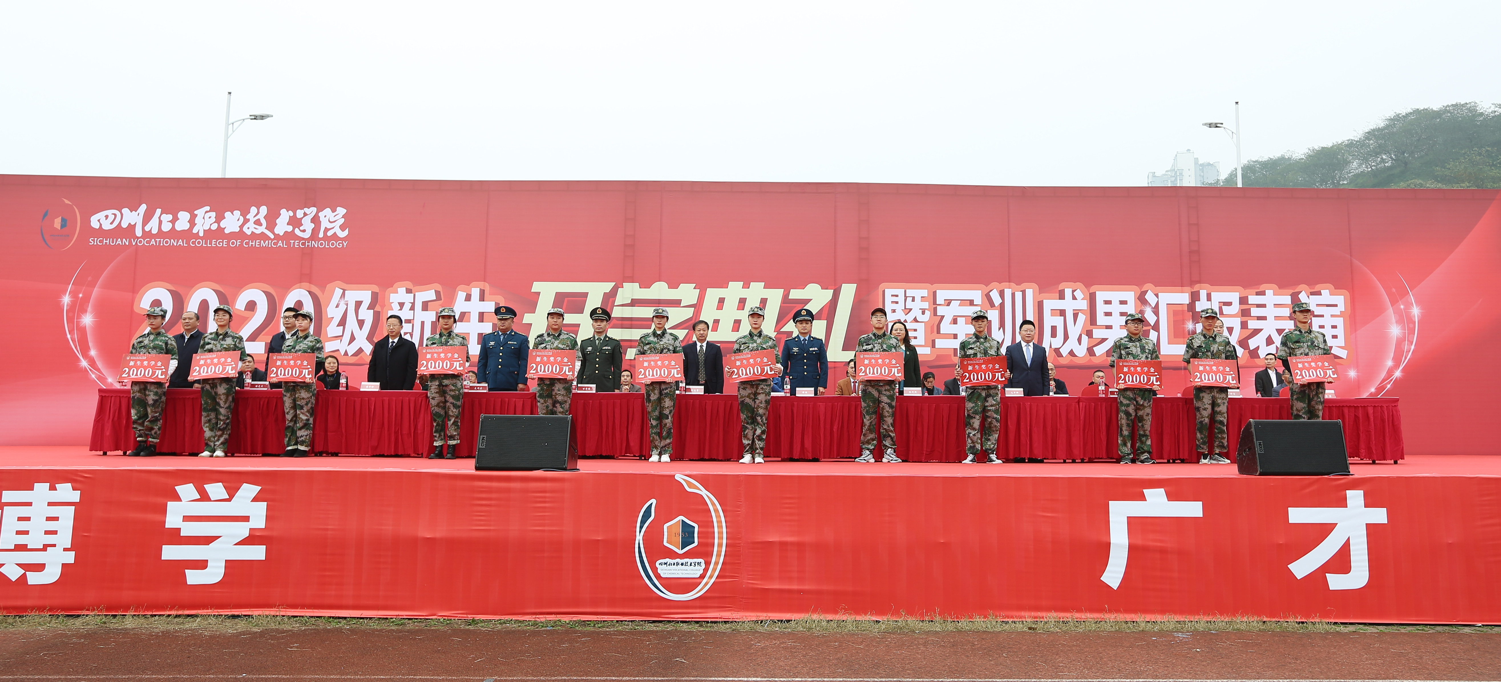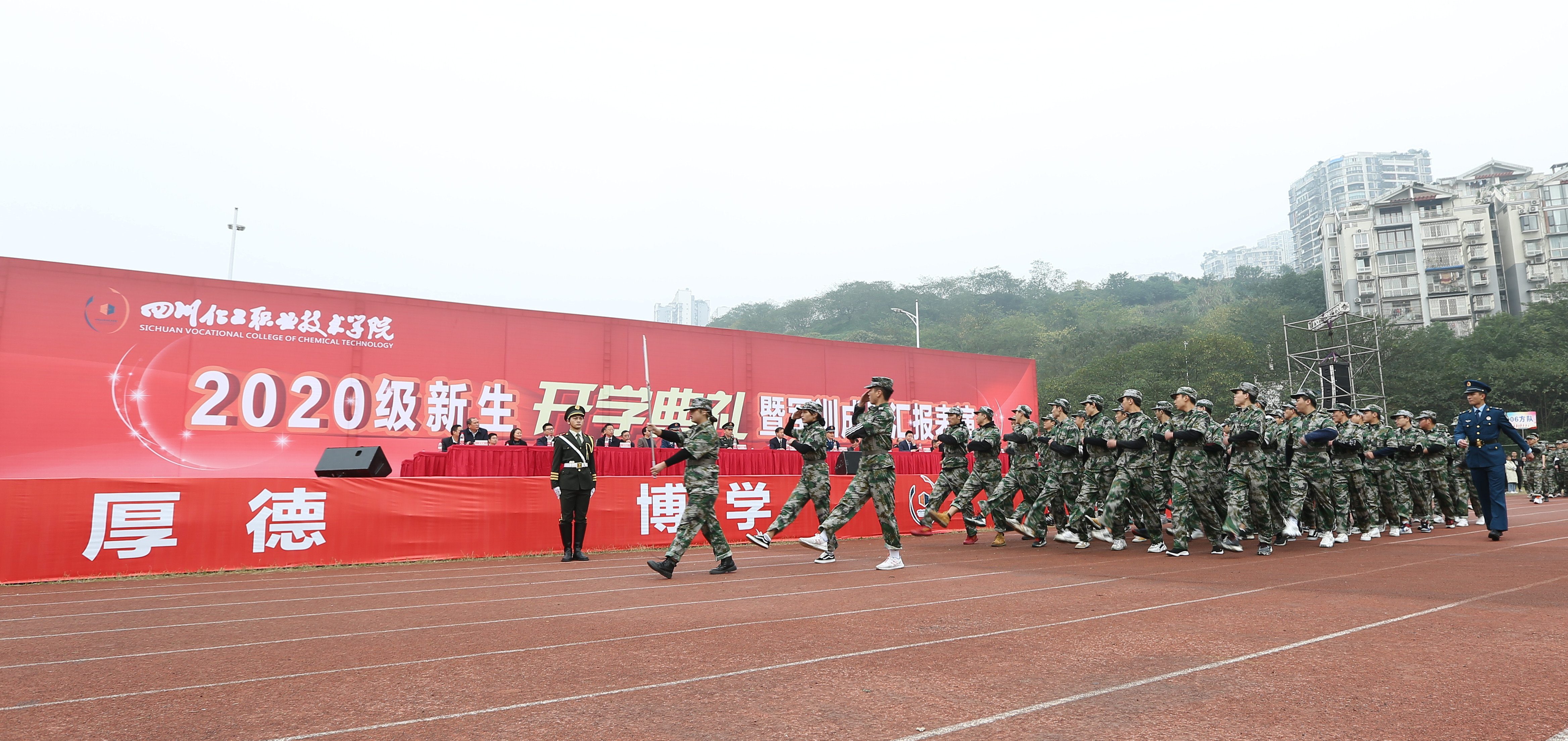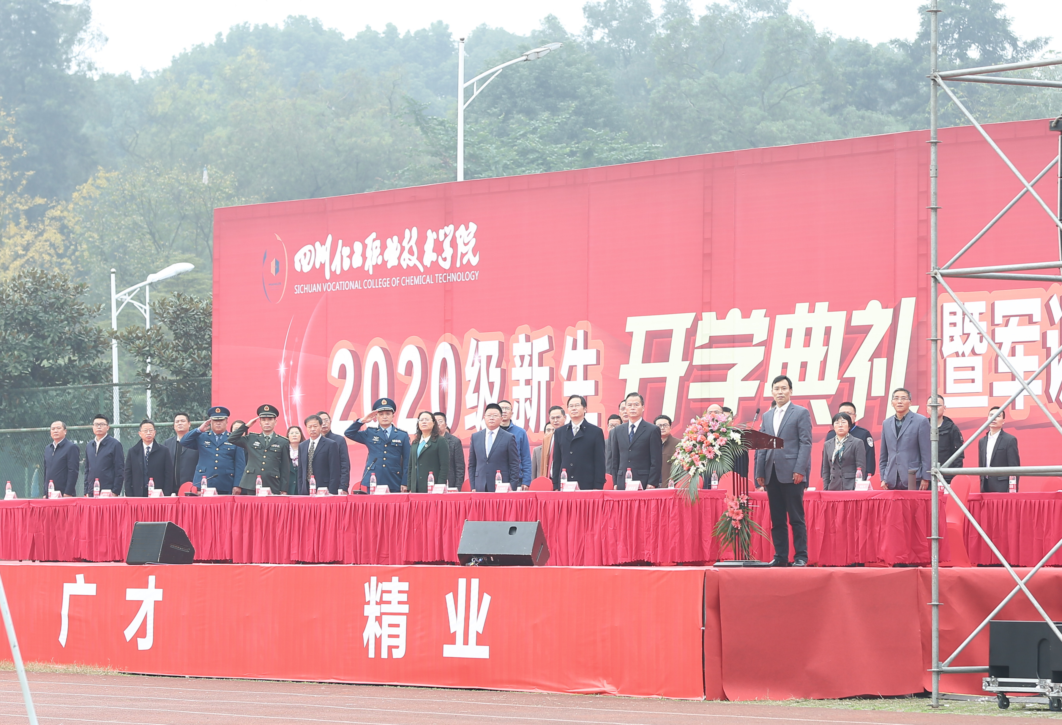 11月6日上午,学校在新运动场隆重举行了2020级新生开学典礼暨军训成果汇报表演。泸州市江阳区武装部部长万学德,军训总教官、驻泸空军部队中校侯超,军训副总教官、驻泸空军部队中校史伟东,学校党委书记刘志勇,党委副书记、纪委书记、工会主席陈淑娟,党委委员、副院长蒲开伦、王志斌、文申柳,副院长邓启华,院长助理、党政办主任谢光杰,学校各处室、二级学院负责人,部分教师、辅导员及4000余名2020级新生参加开学典礼暨军训成果汇报表演。开学典礼由学生处邓子萍副处长主持。