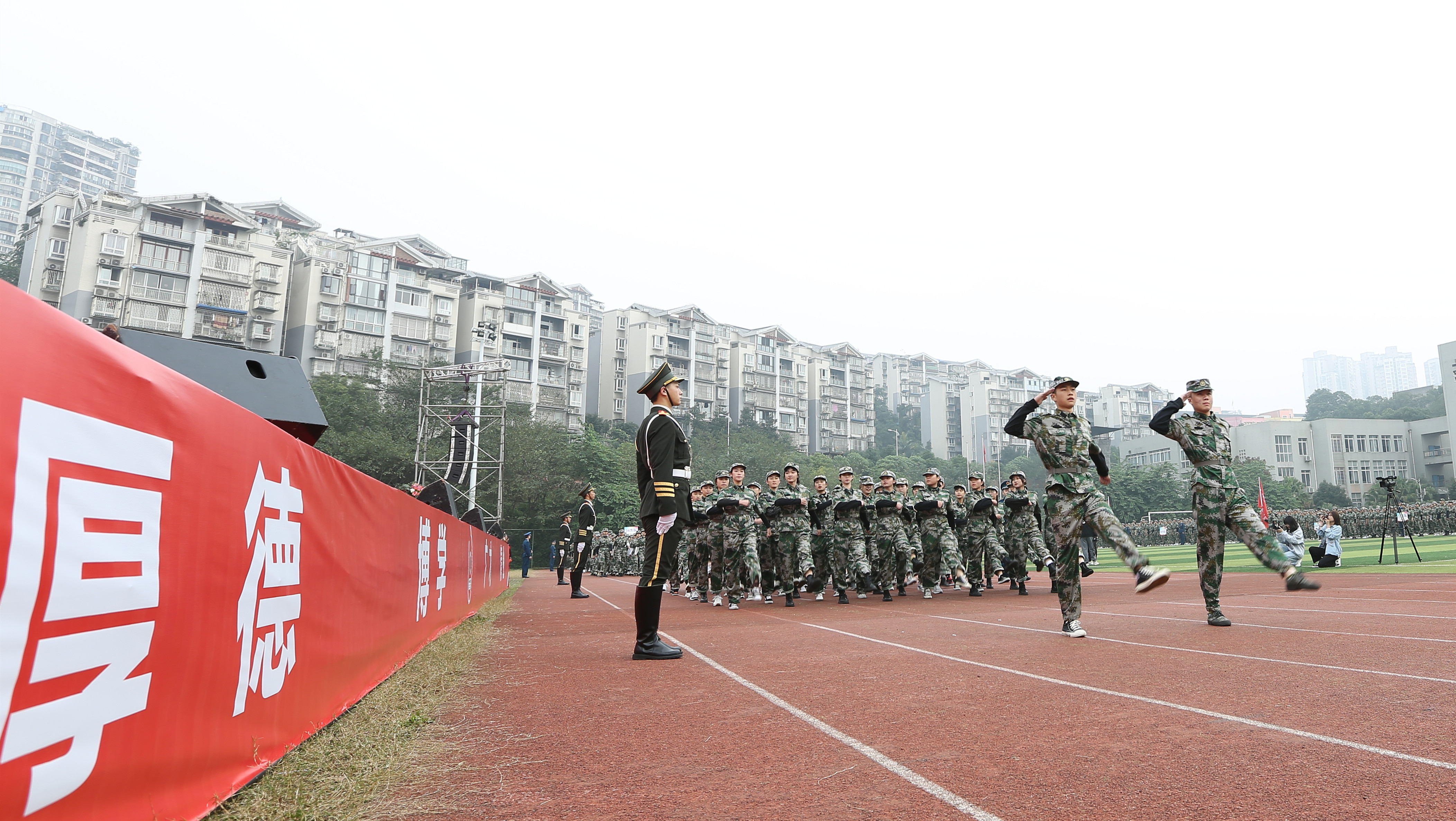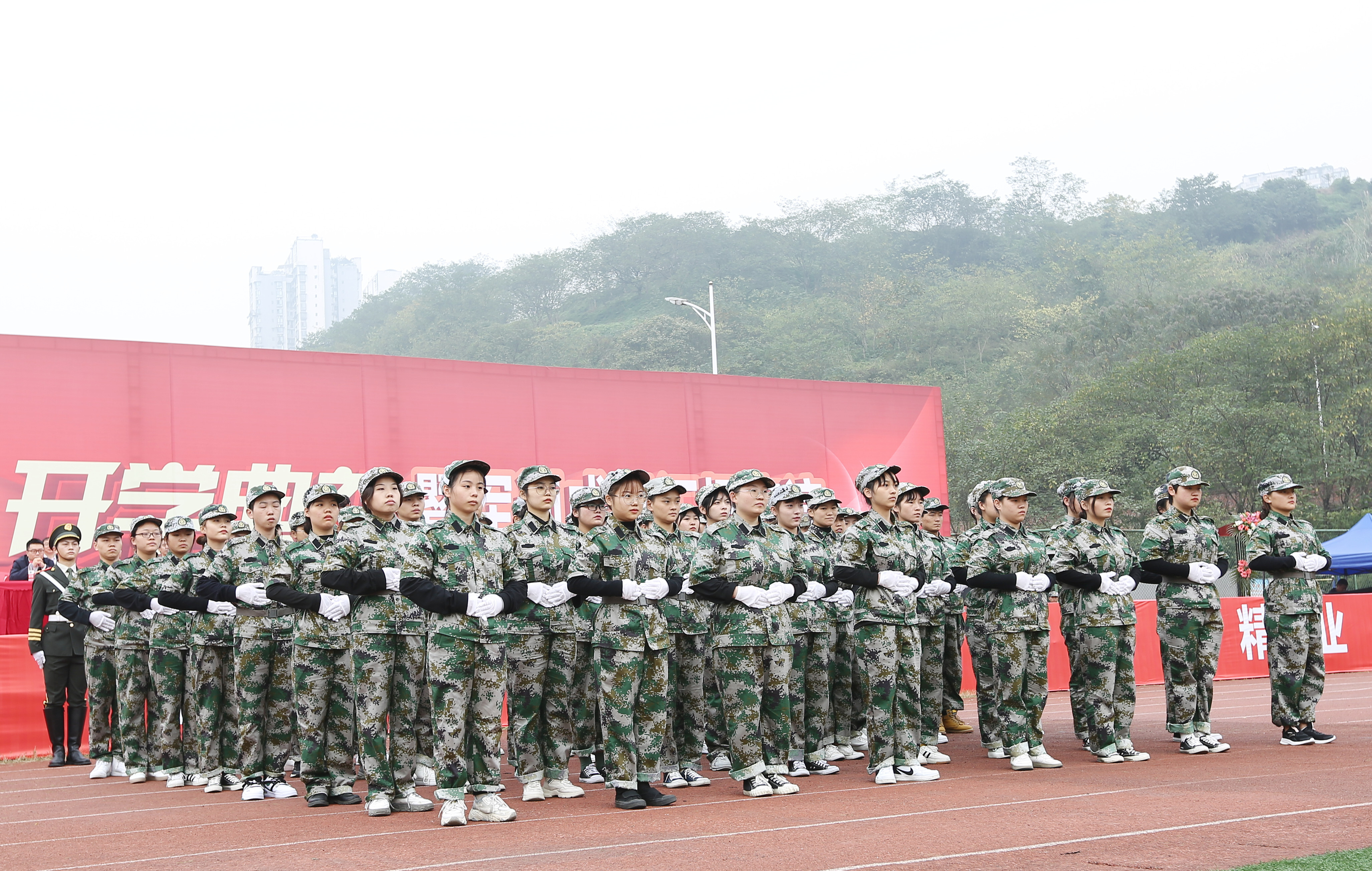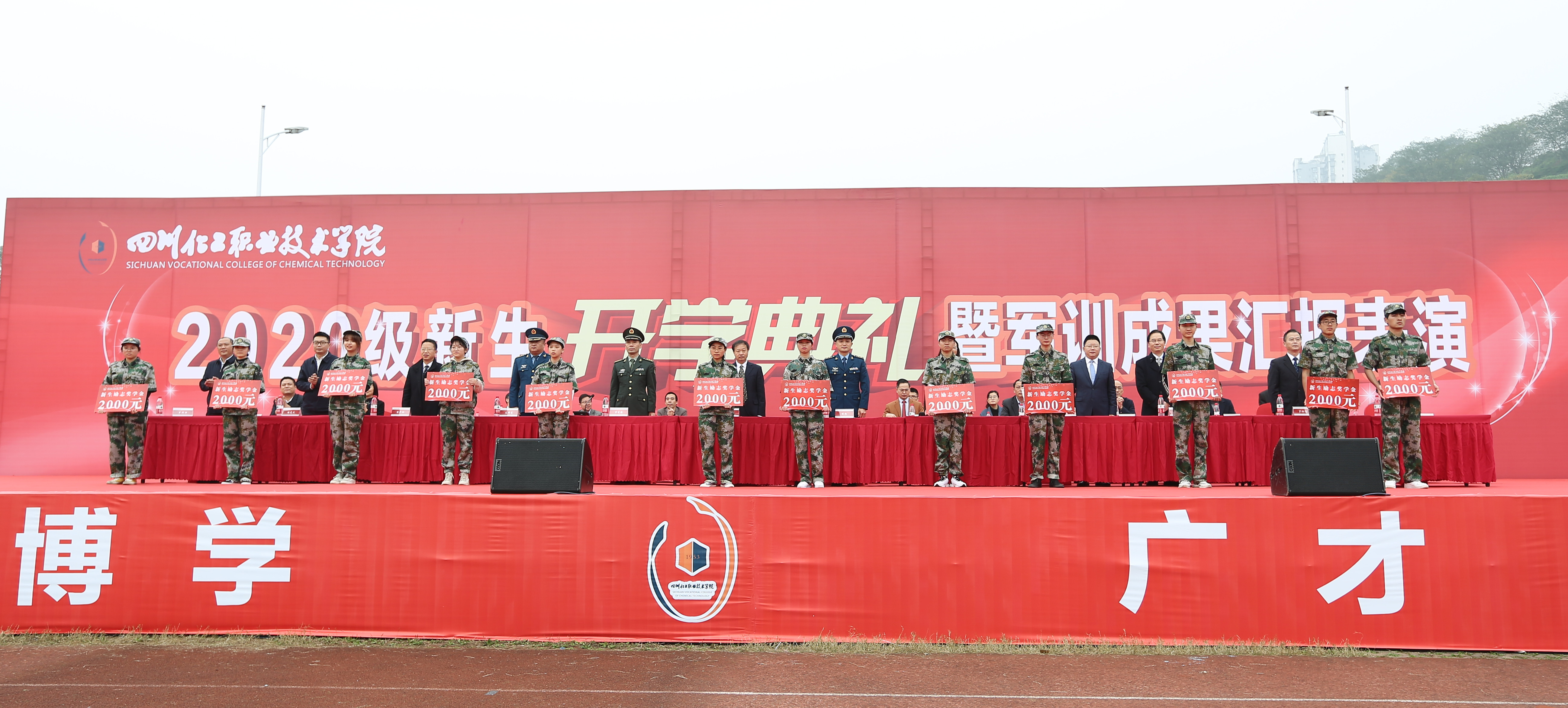 11月6日上午,学校在新运动场隆重举行了2020级新生开学典礼暨军训成果汇报表演。泸州市江阳区武装部部长万学德,军训总教官、驻泸空军部队中校侯超,军训副总教官、驻泸空军部队中校史伟东,学校党委书记刘志勇,党委副书记、纪委书记、工会主席陈淑娟,党委委员、副院长蒲开伦、王志斌、文申柳,副院长邓启华,院长助理、党政办主任谢光杰,学校各处室、二级学院负责人,部分教师、辅导员及4000余名2020级新生参加开学典礼暨军训成果汇报表演。开学典礼由学生处邓子萍副处长主持。